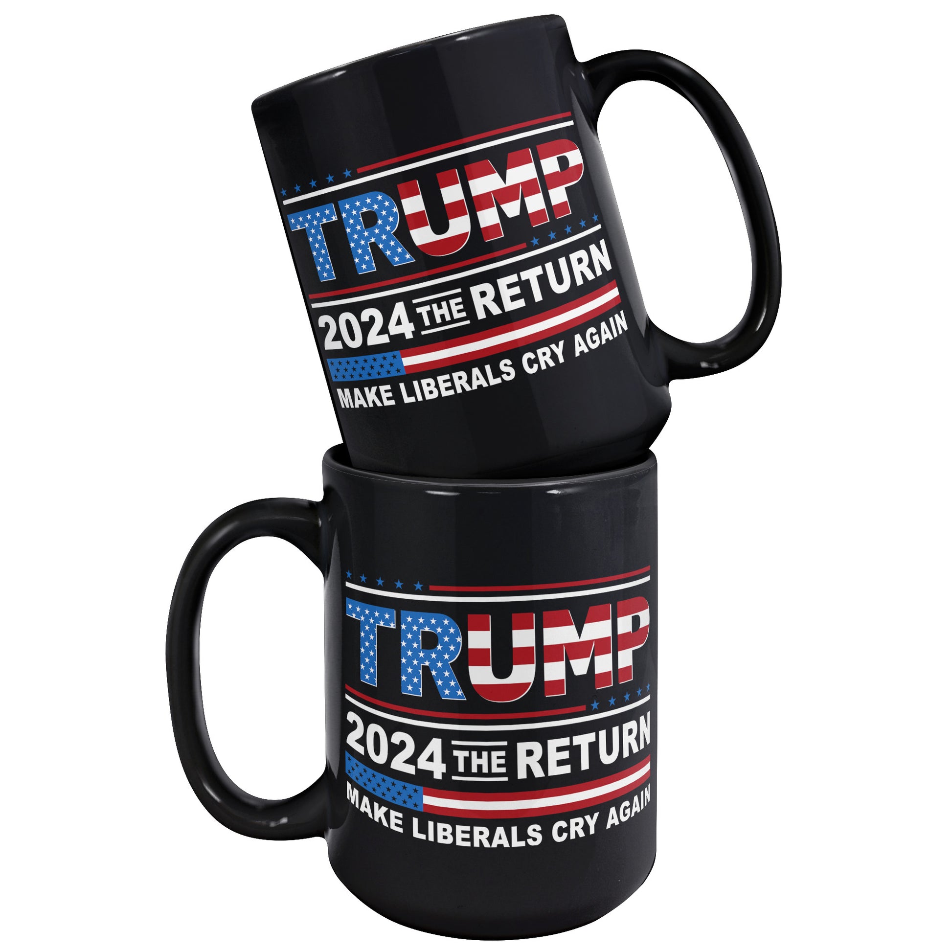 Donald Trump 2024 The Return Make Liberals Cry Again Tea Cup - Trump MAGA GOP 15oz Black Coffee Mug (TL-135348192349)