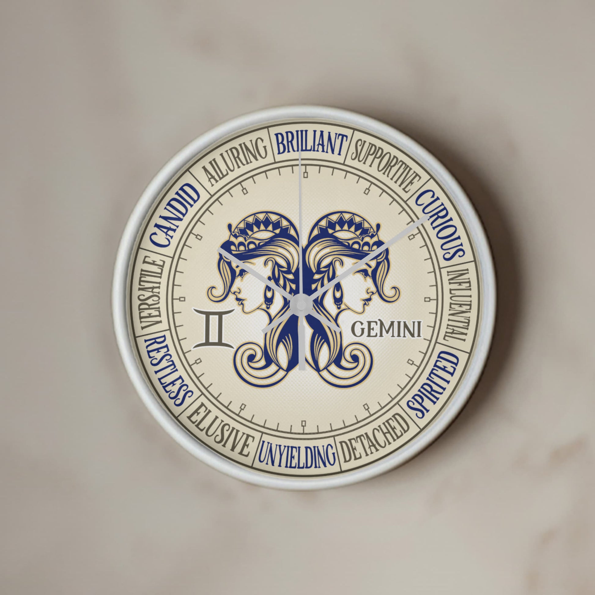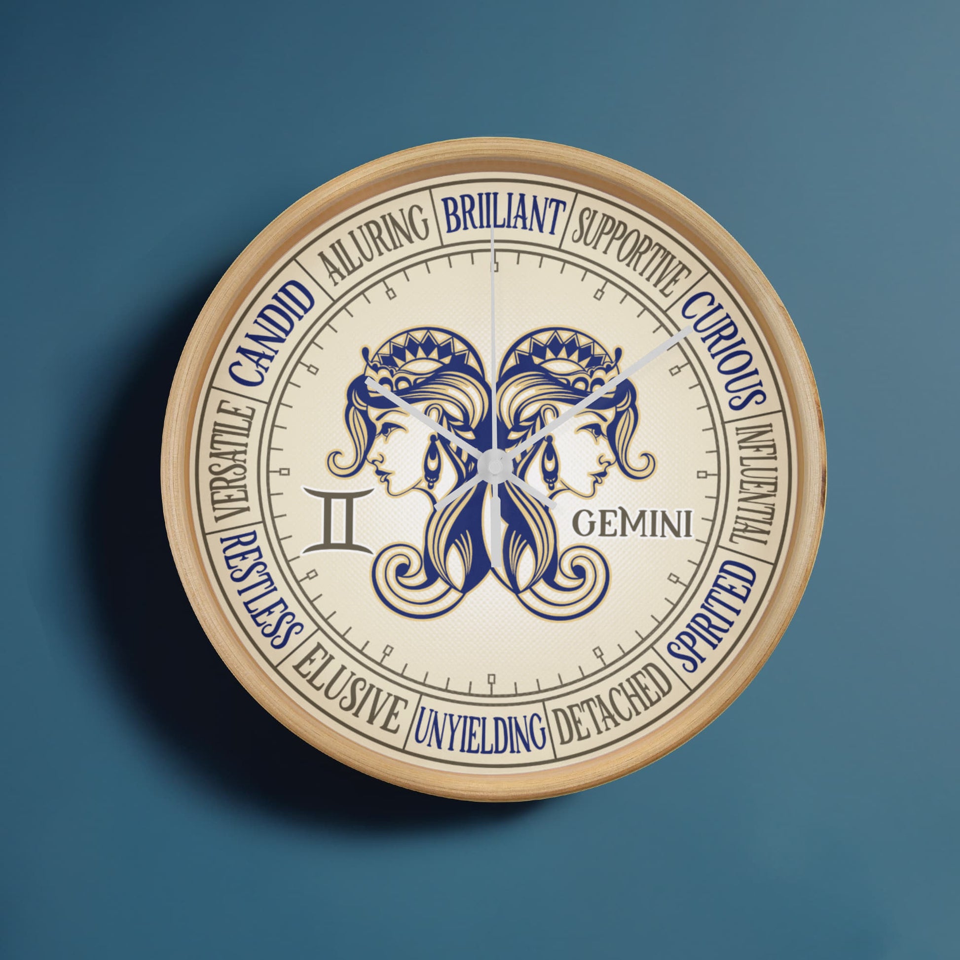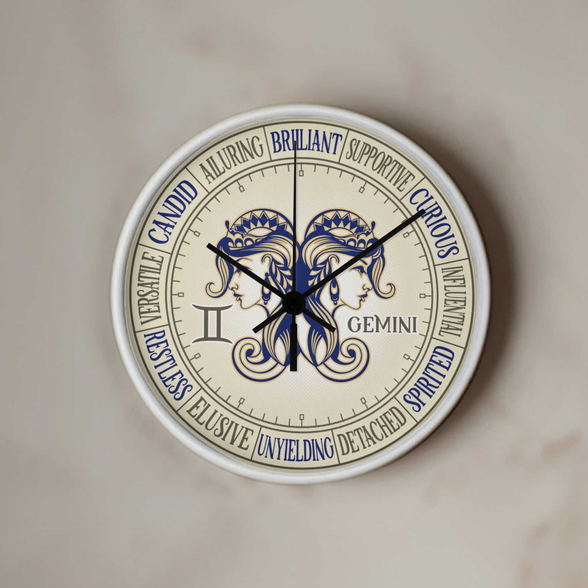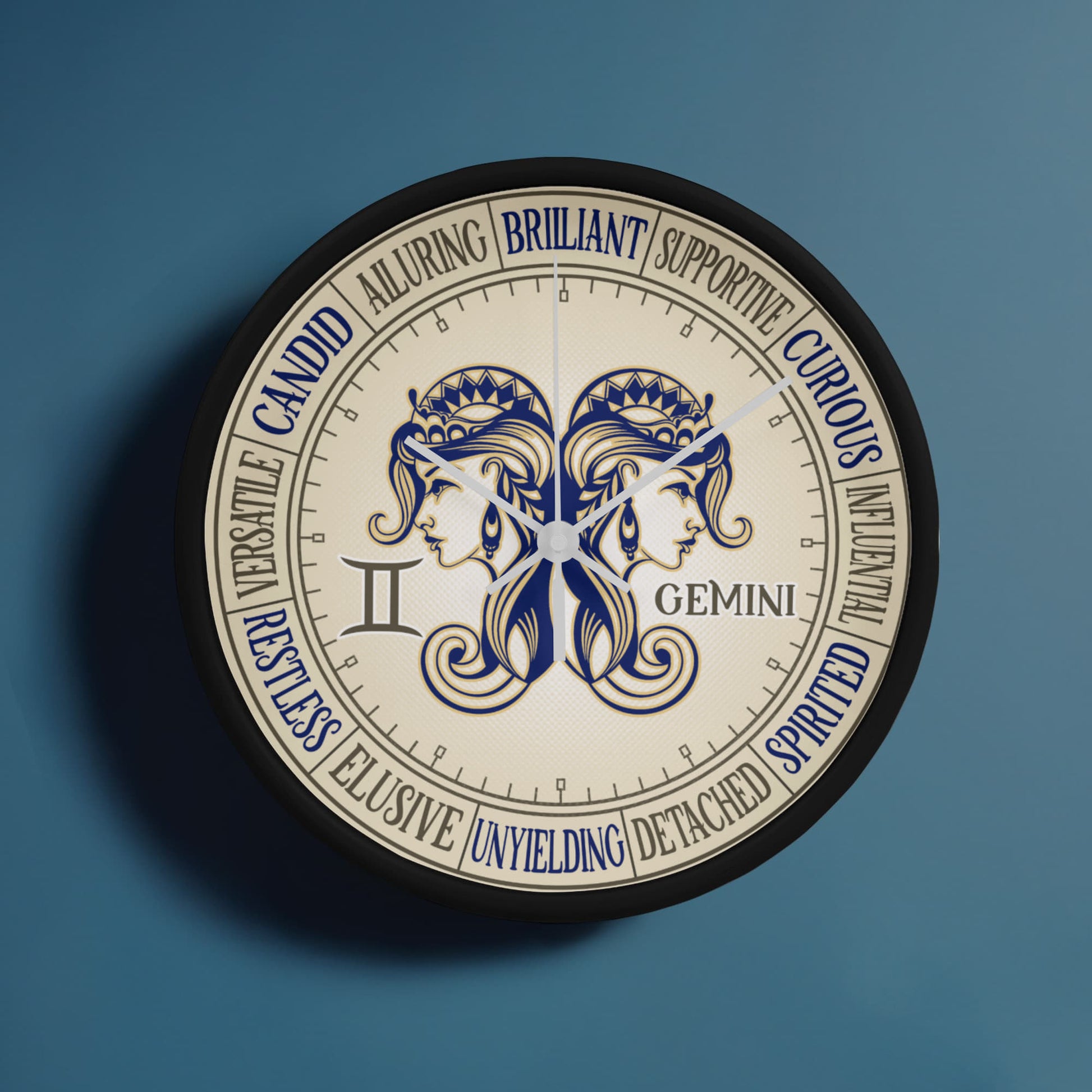 Gemini Wall Clock - Astrology Wall Art, Gemini Lover Gift, Zodiac Decor, Gemini Constellation Present