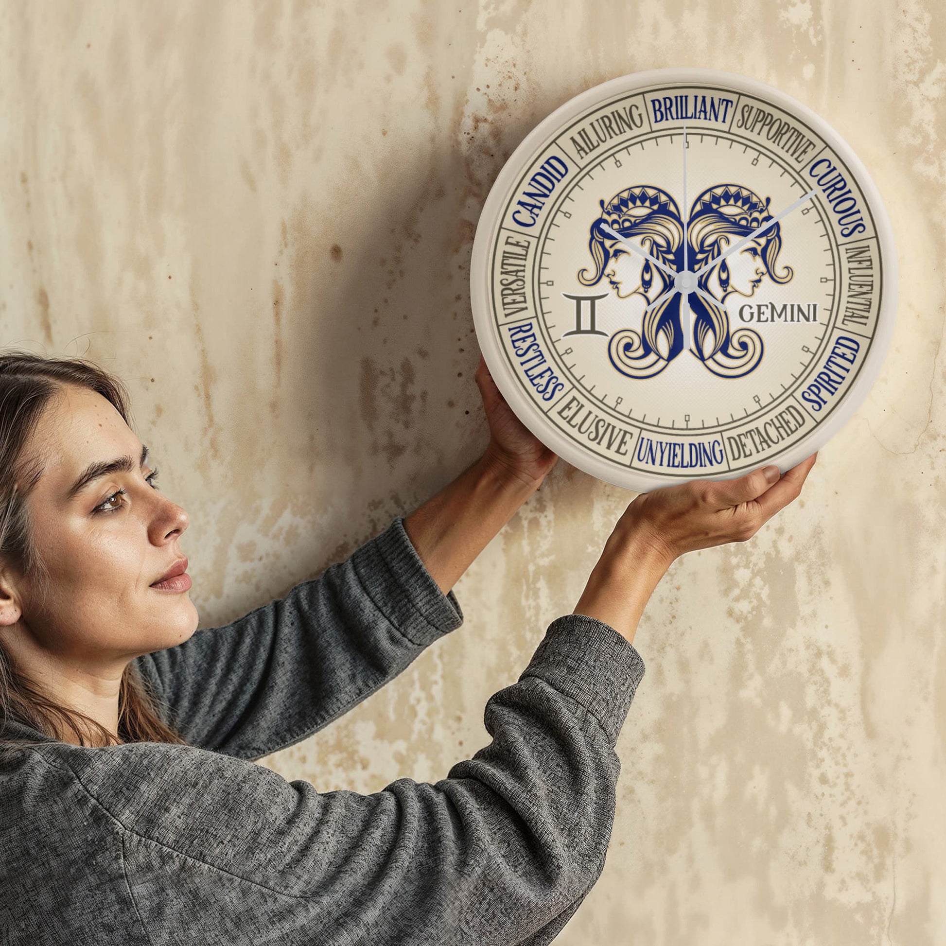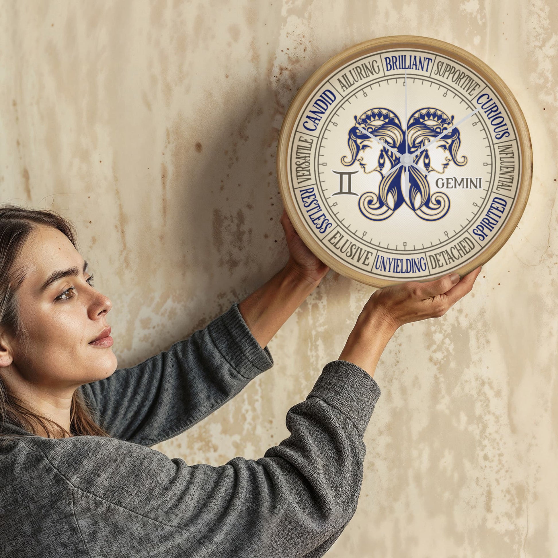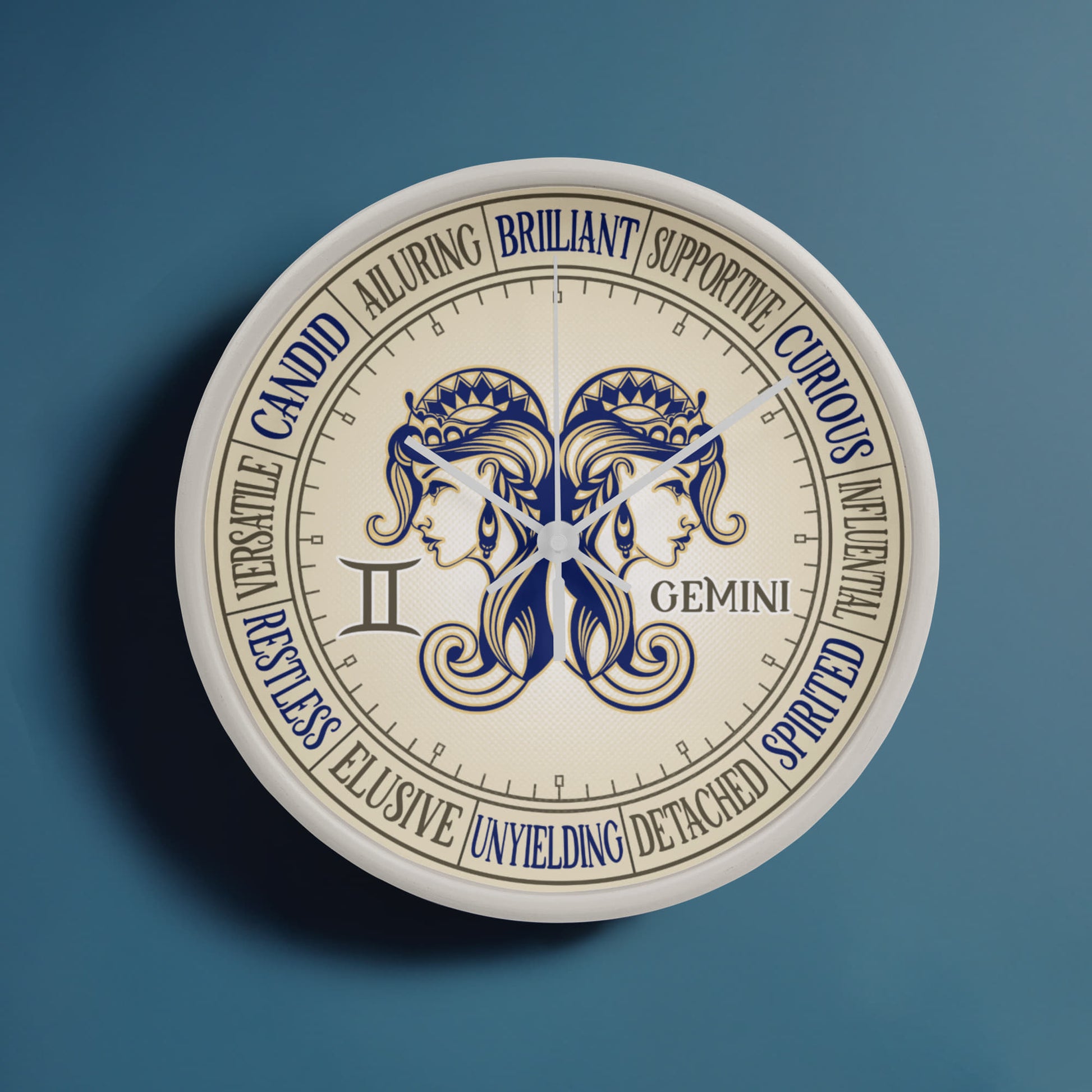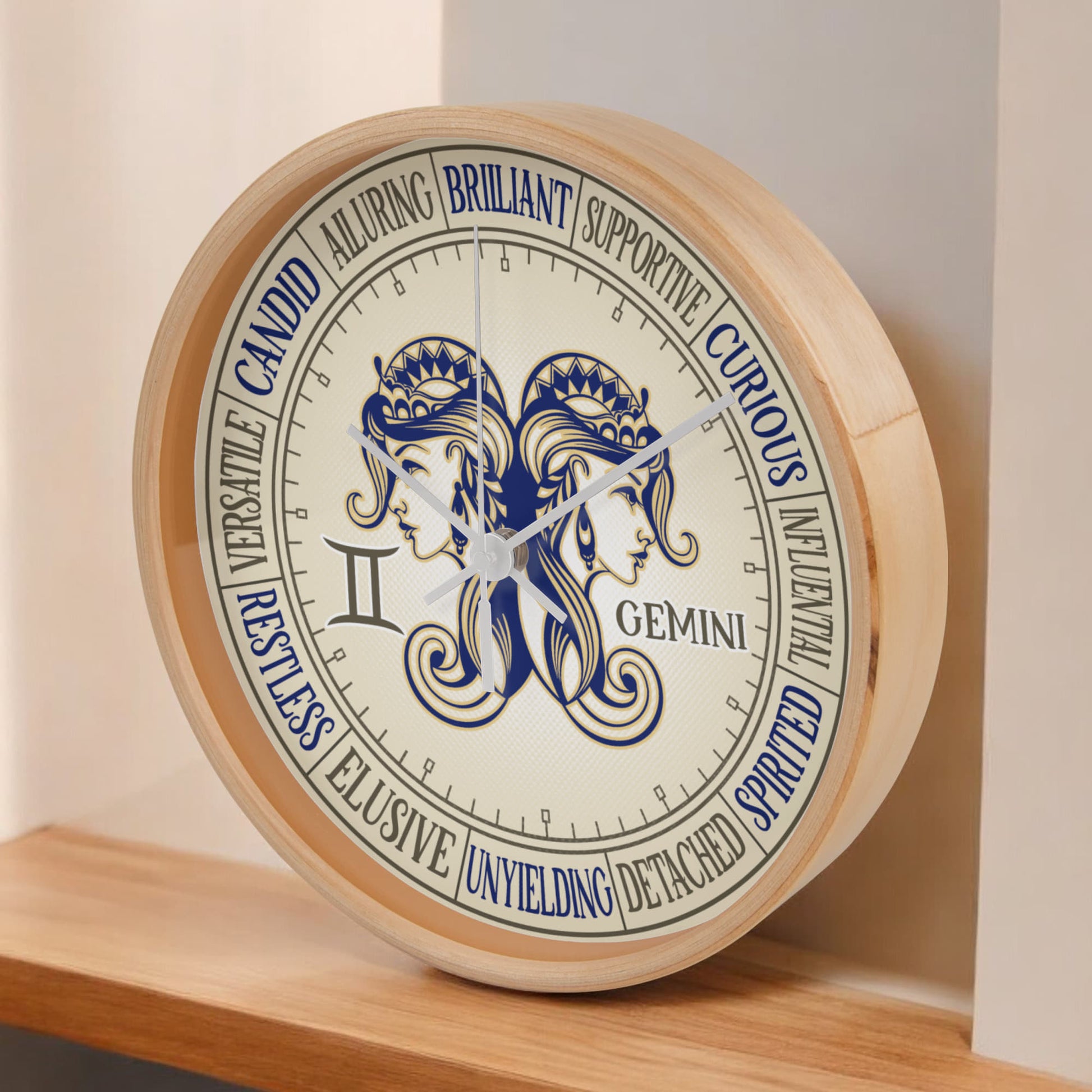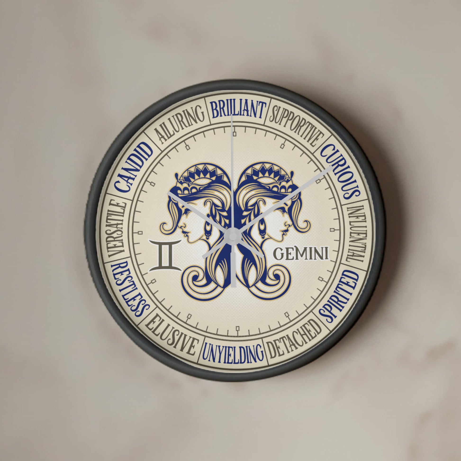 Gemini Wall Clock - Astrology Wall Art, Gemini Lover Gift, Zodiac Decor, Gemini Constellation Present