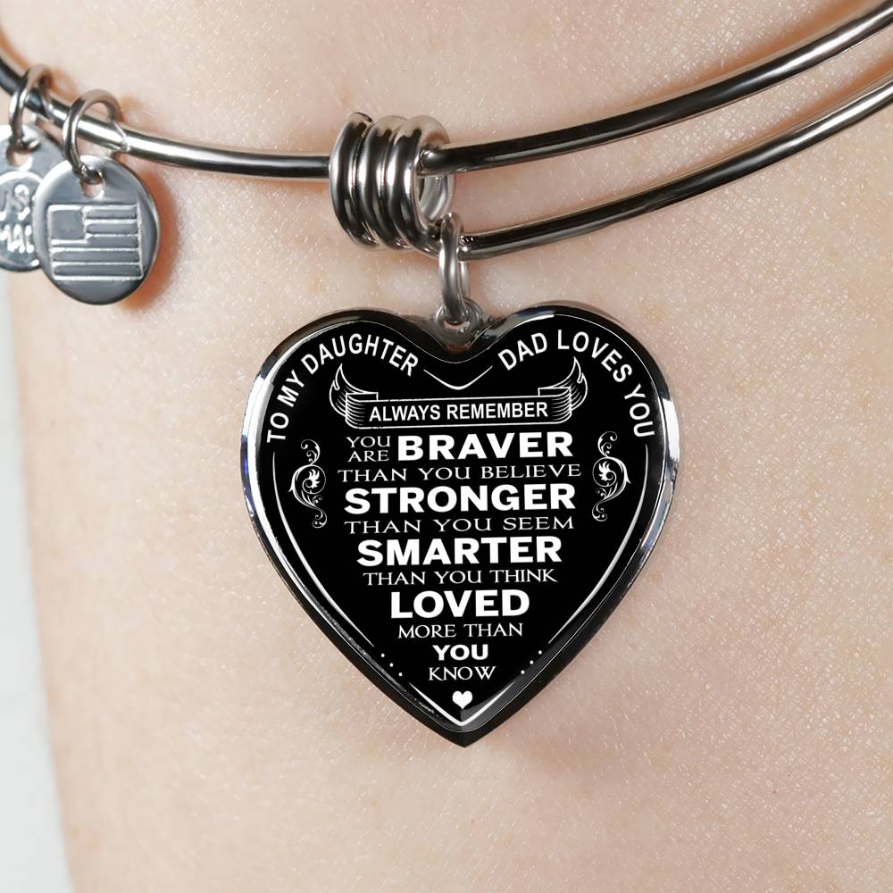 Great Dad to Daughter Gift Ideas - Always Remember You Are Braver Than You Believe Stronger Than You Seem ... Loved More Than You Know Luxury Novelty Necklace and Bangle - Birthday Gift From Father