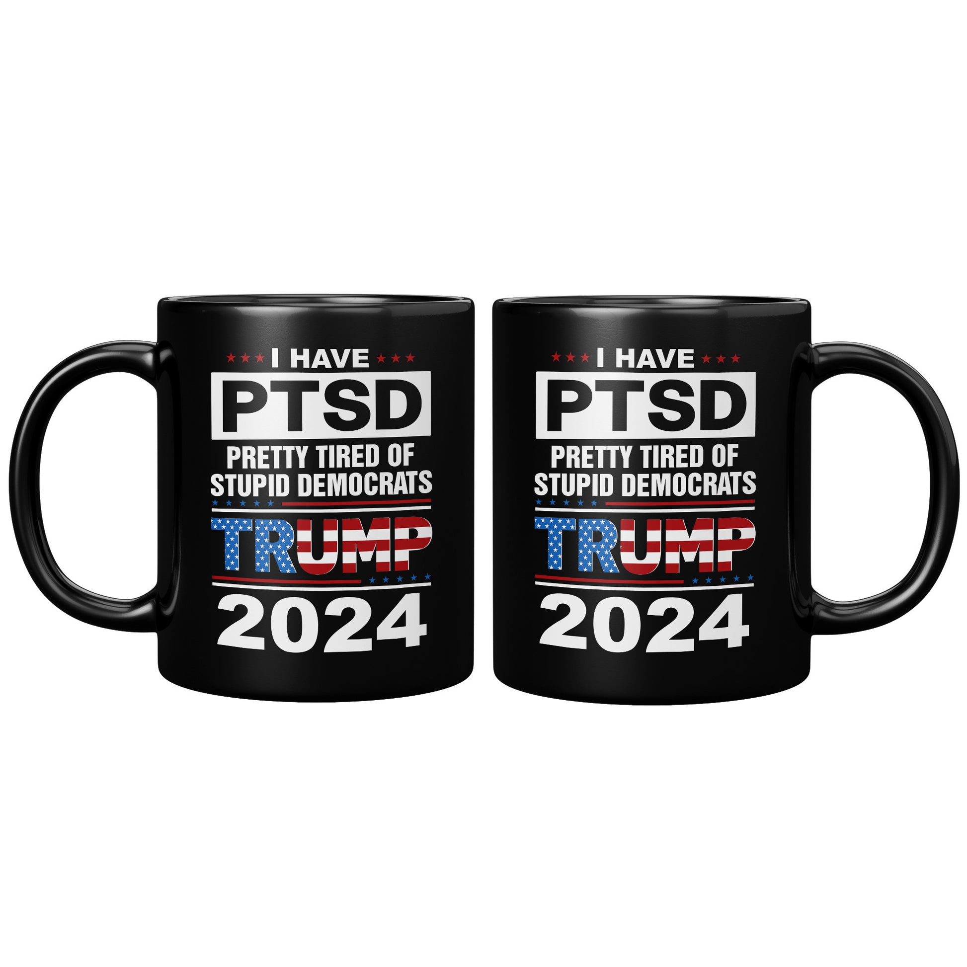Patriots For Trump 2024 Coffee Mug I Have PTSD Pretty Tired of Stupid Democrats 11oz Black Cup (TL-133505856281)