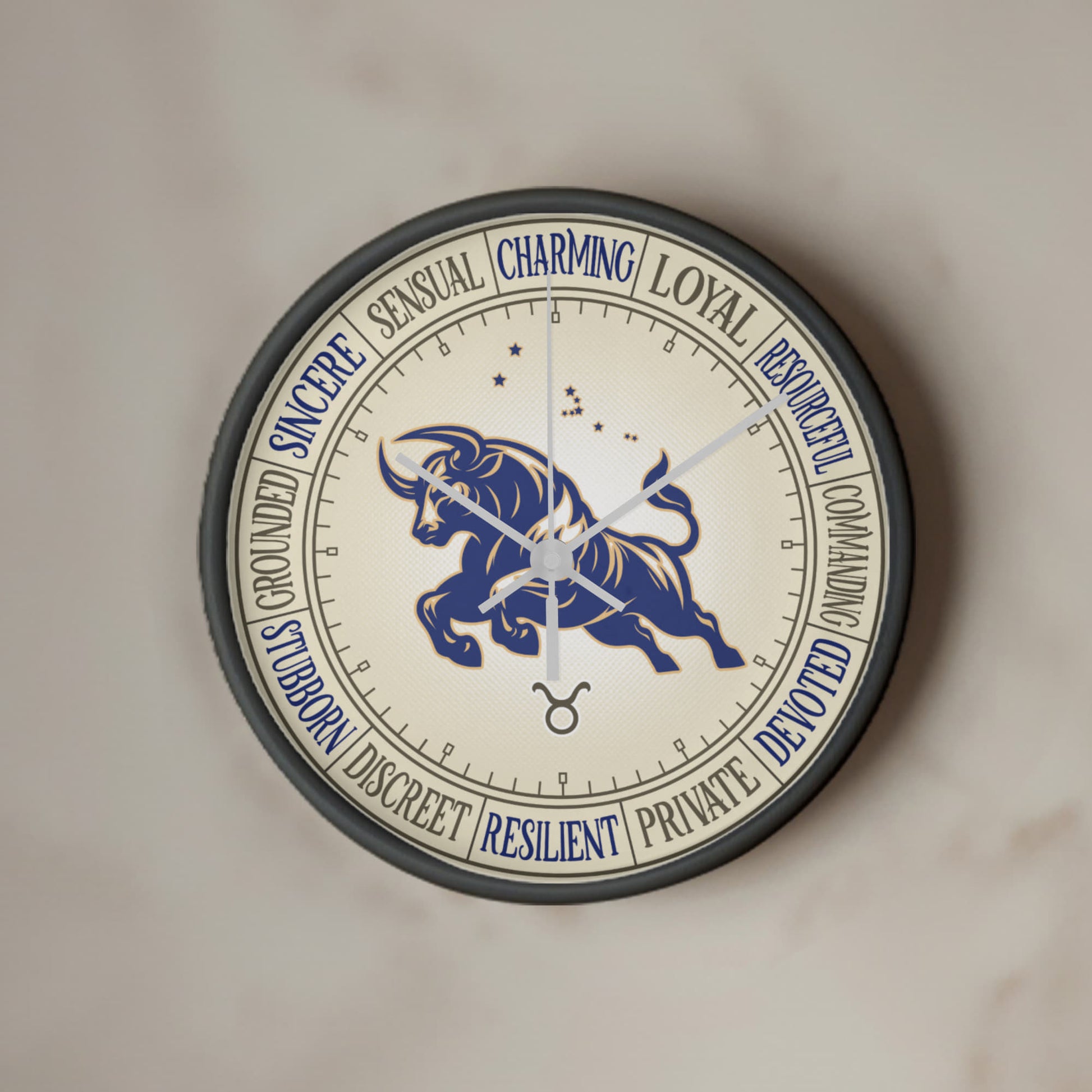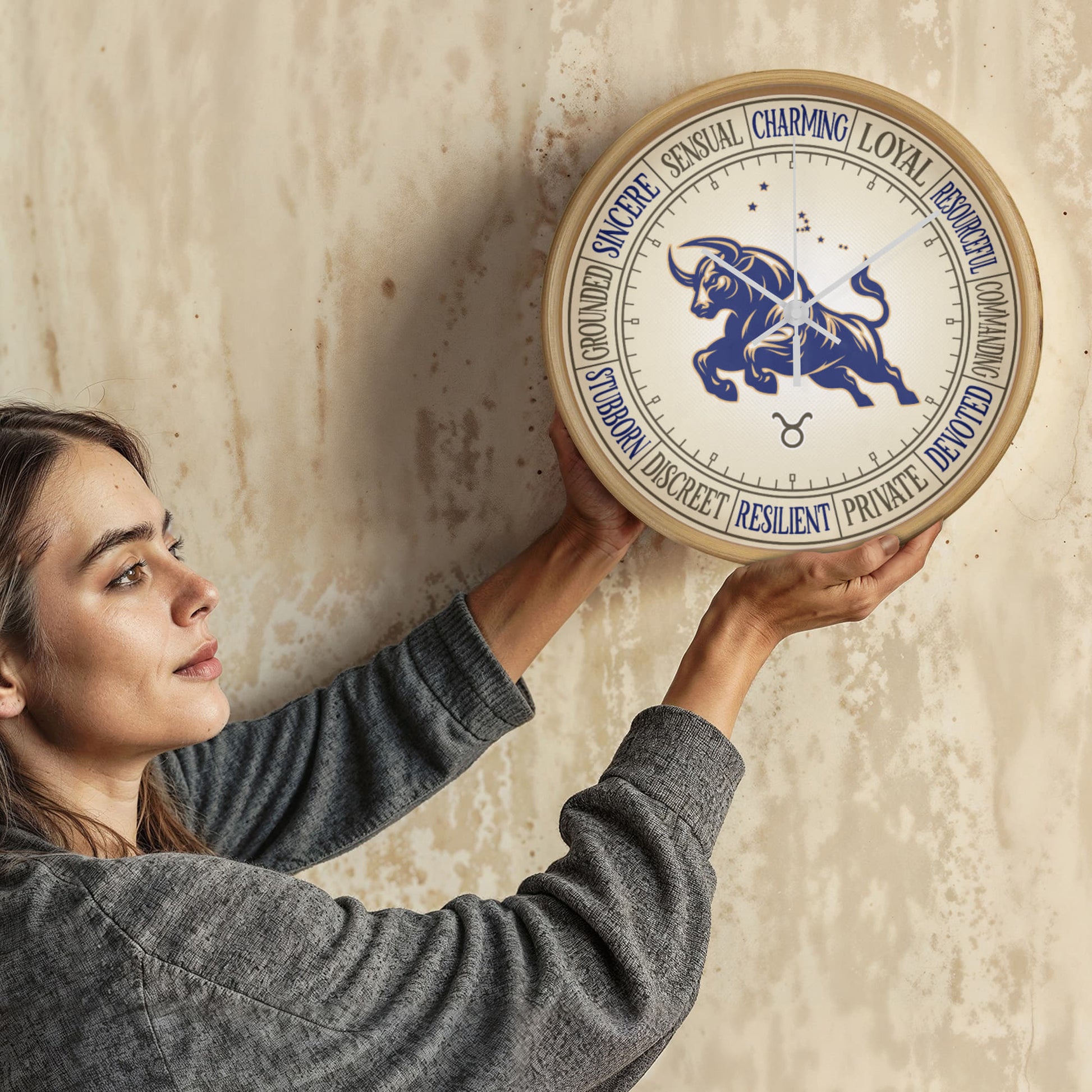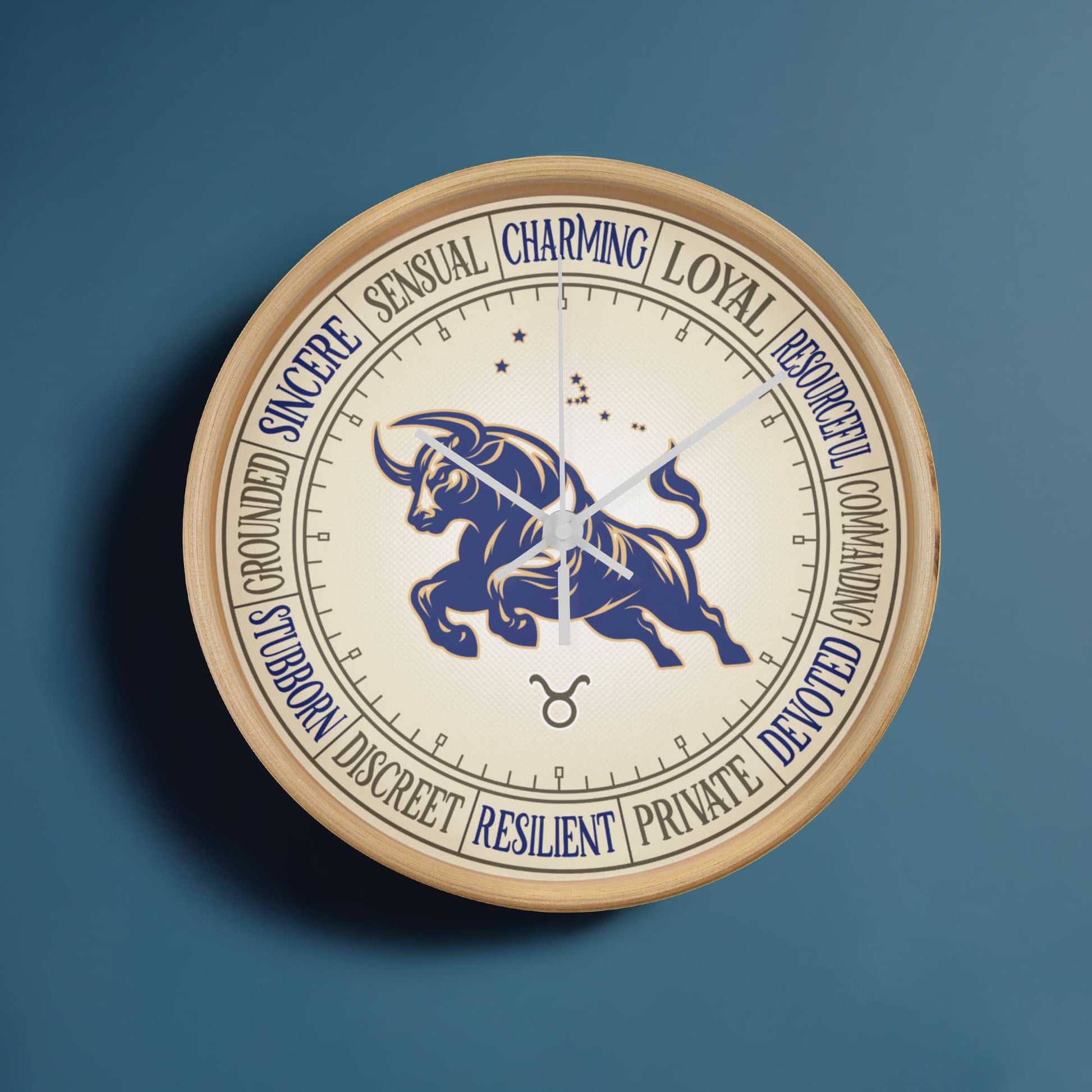 Taurus Wood Frame 10” Wall Clock - Astrology Wall Art, Taurus Lover Gift, Zodiac Decor, Taurus Constellation