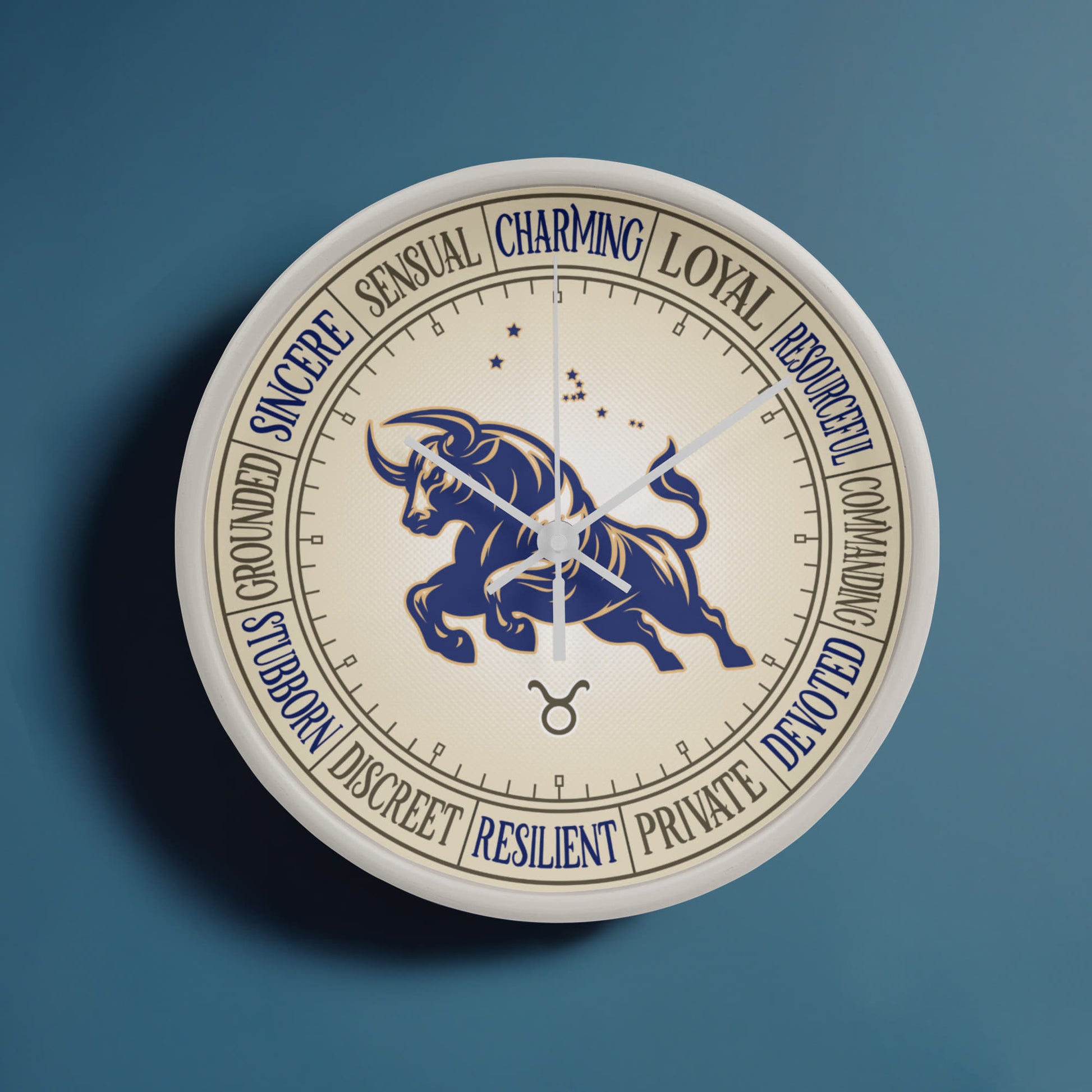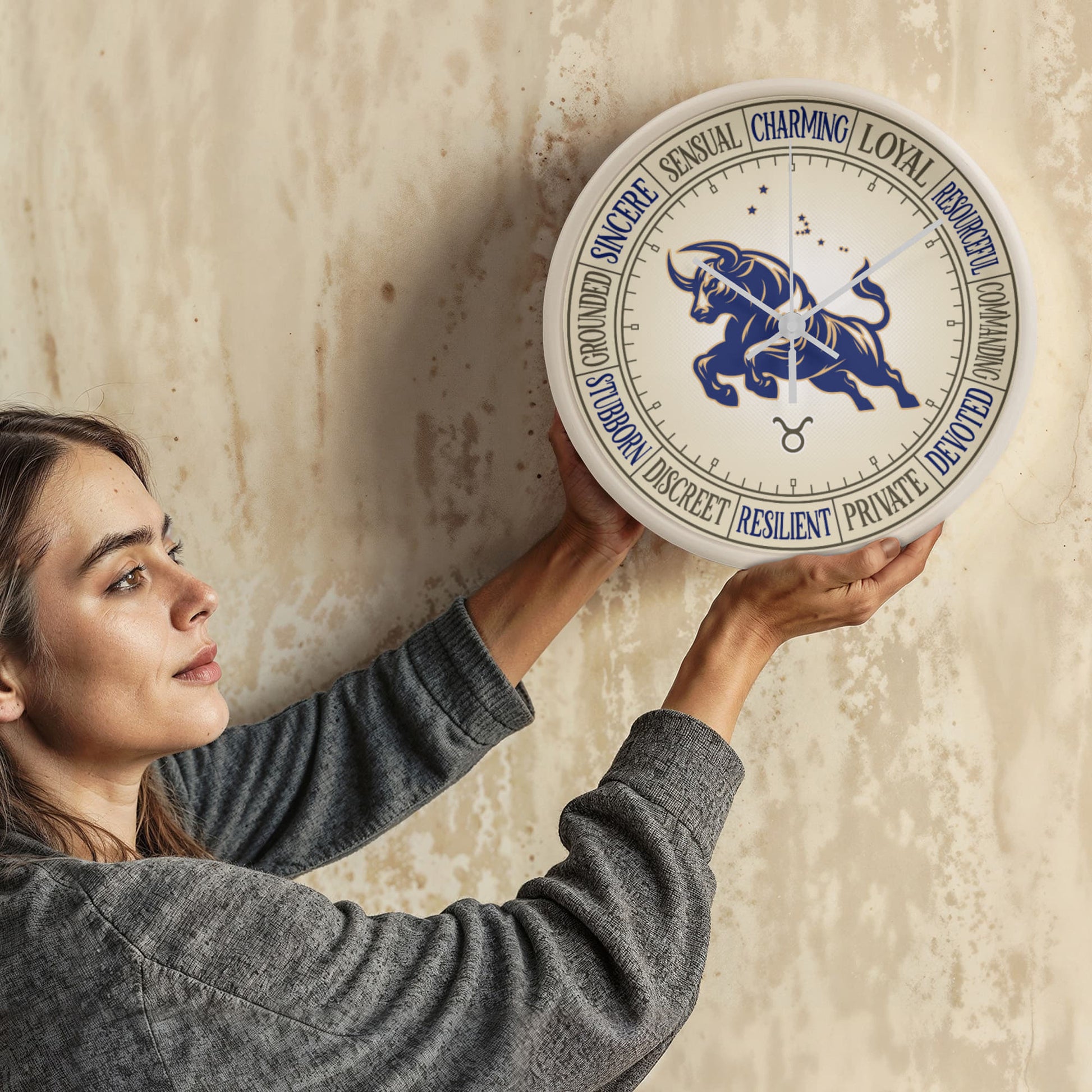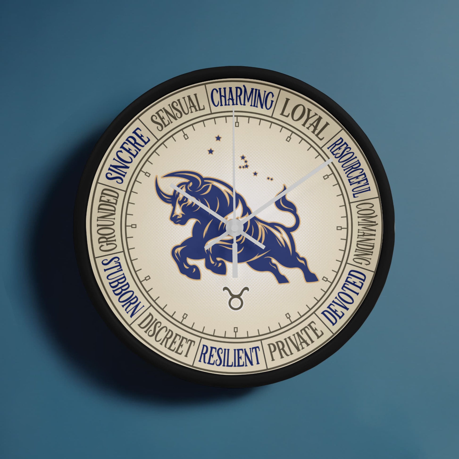 Taurus Wood Frame 10” Wall Clock - Astrology Wall Art, Taurus Lover Gift, Zodiac Decor, Taurus Constellation