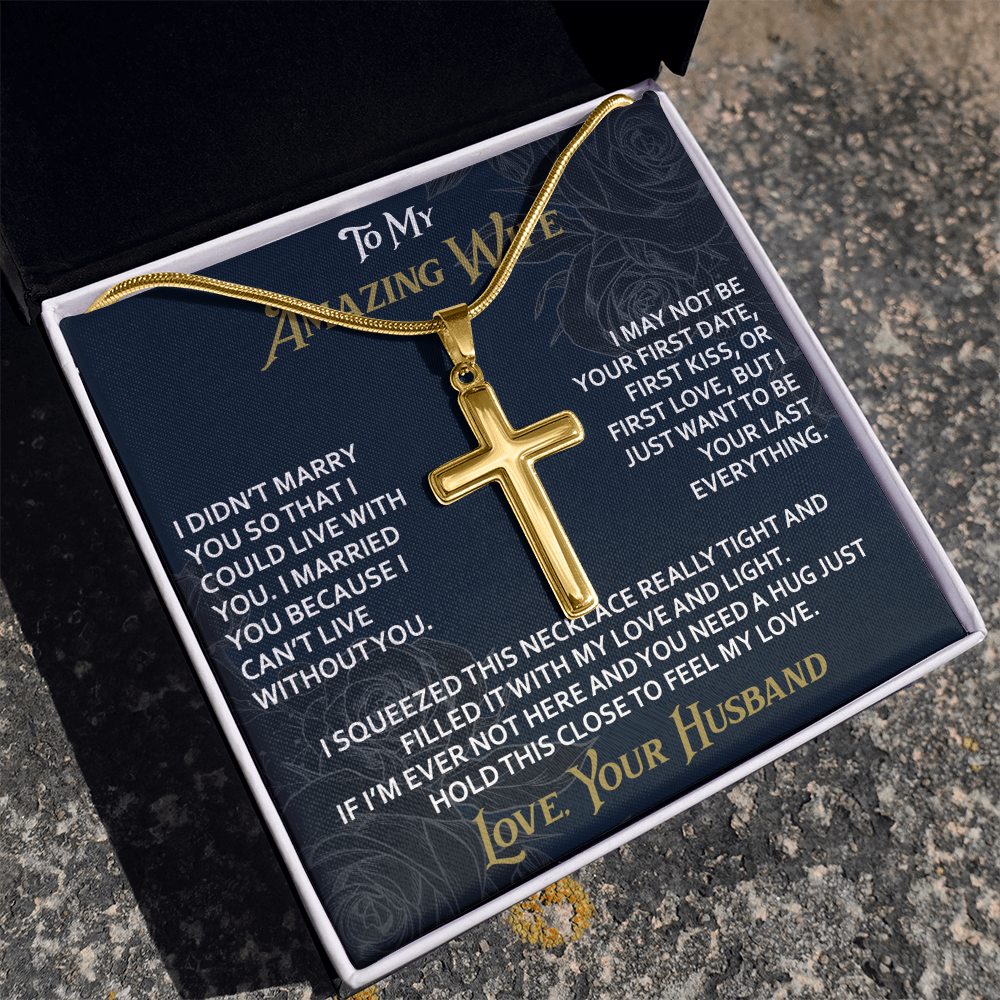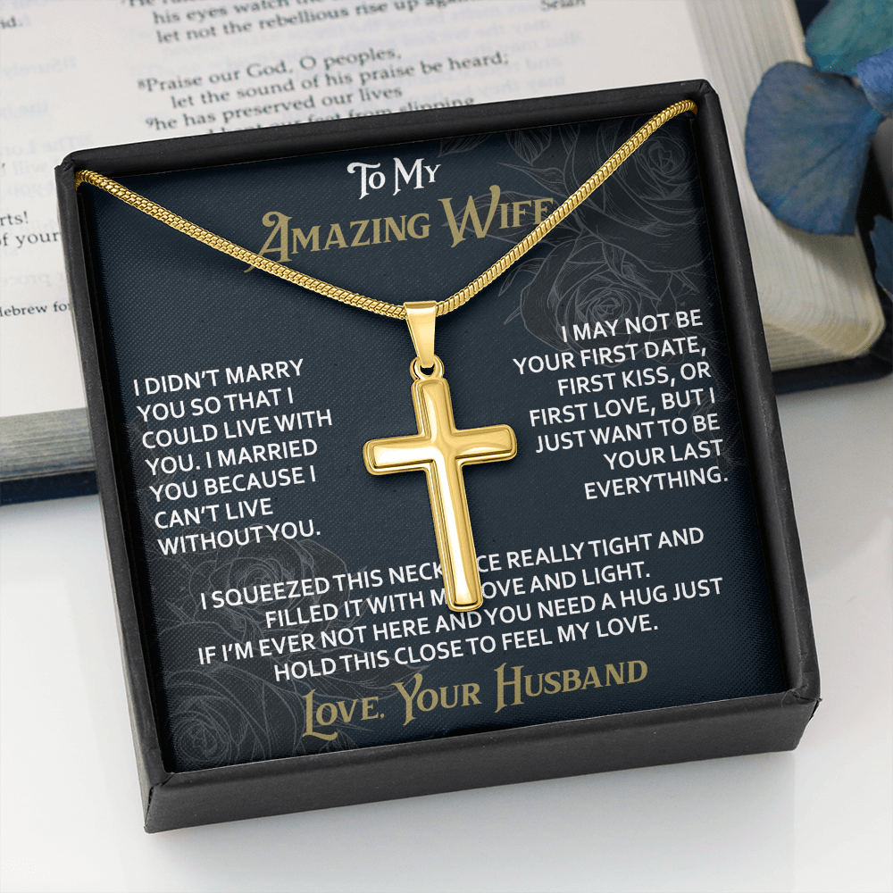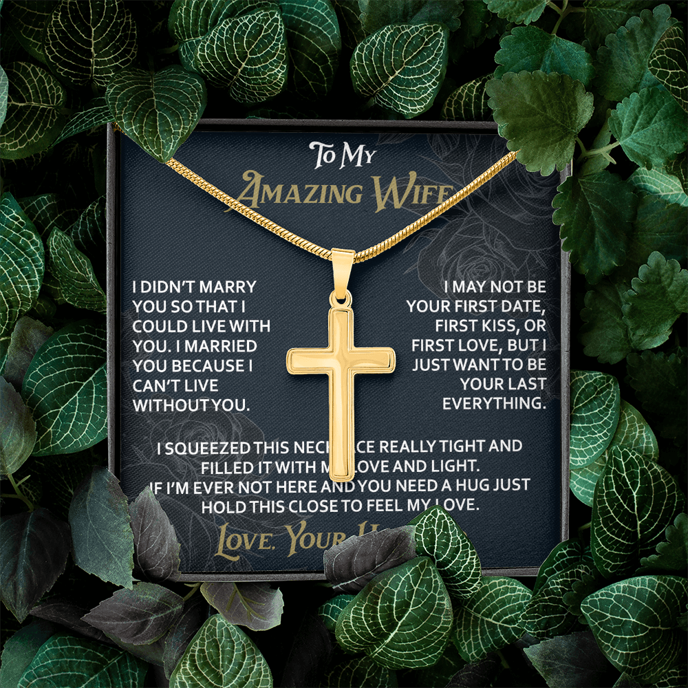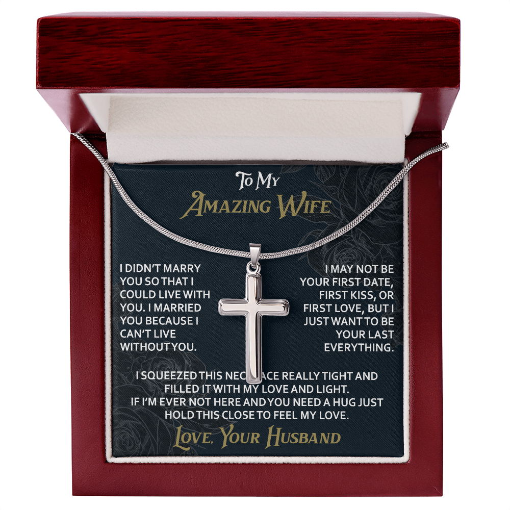 To My Amazing Wife Artisan Cross Necklace from Husband -Valentine Jewelry For Soulmate Bride - Gift for Birthday Christmas