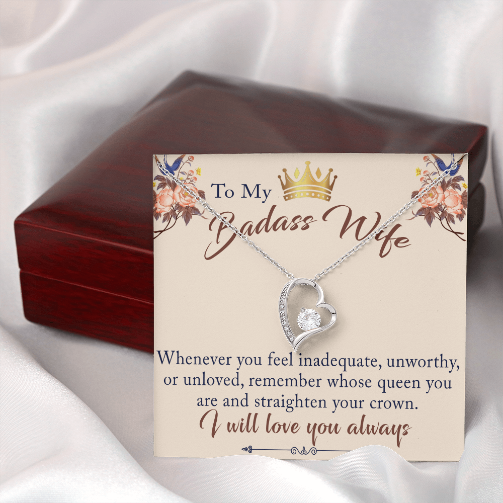 To My Badass Wife Gift - Forever Love Beauty Necklace for Valentine, Mother Day or any Special Occasion