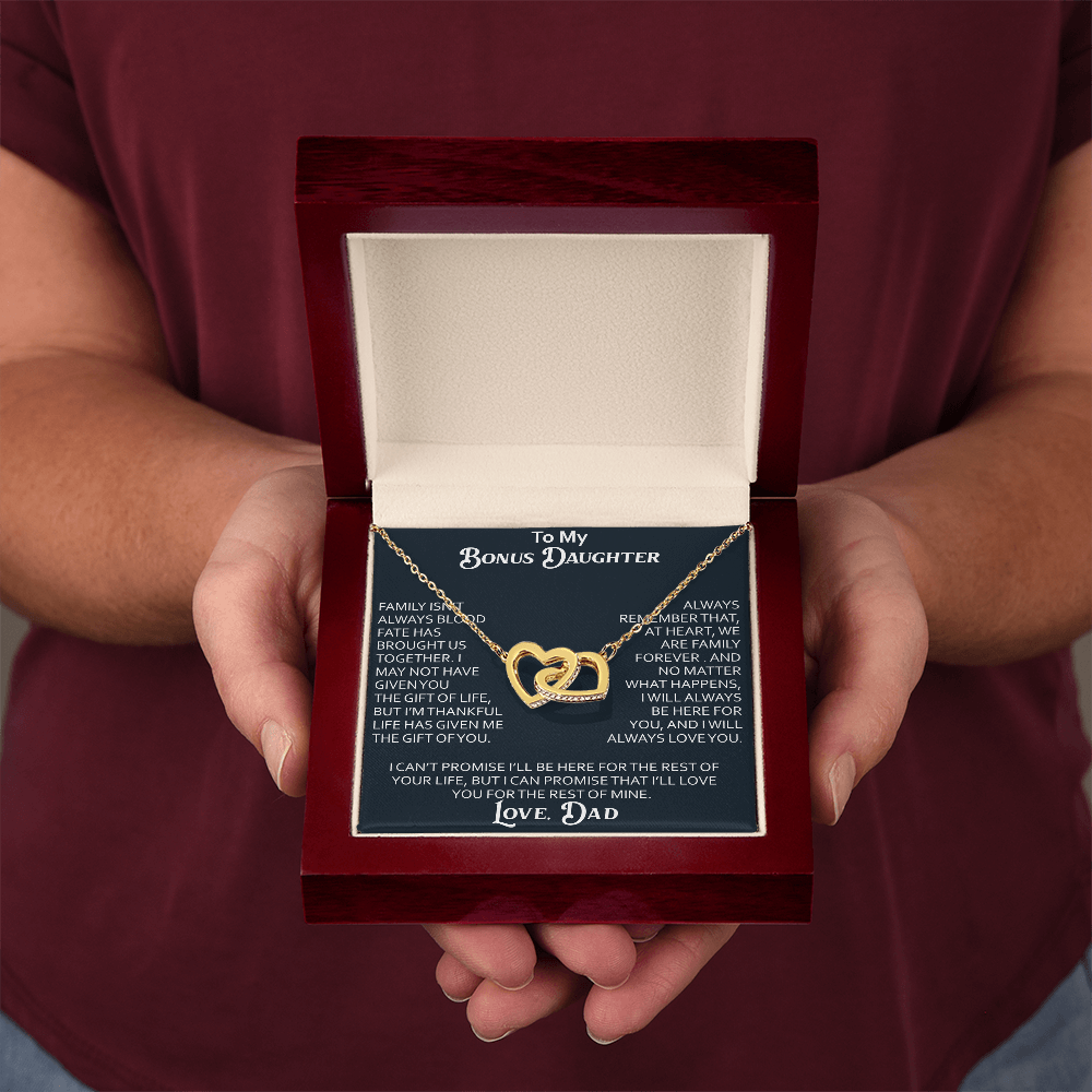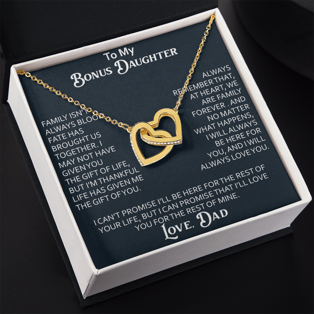 To My Bonus Daughter Interlocking Hearts Necklace Meaningful Gift from Dad, Stepdaughter Heart Family Love Jewelry