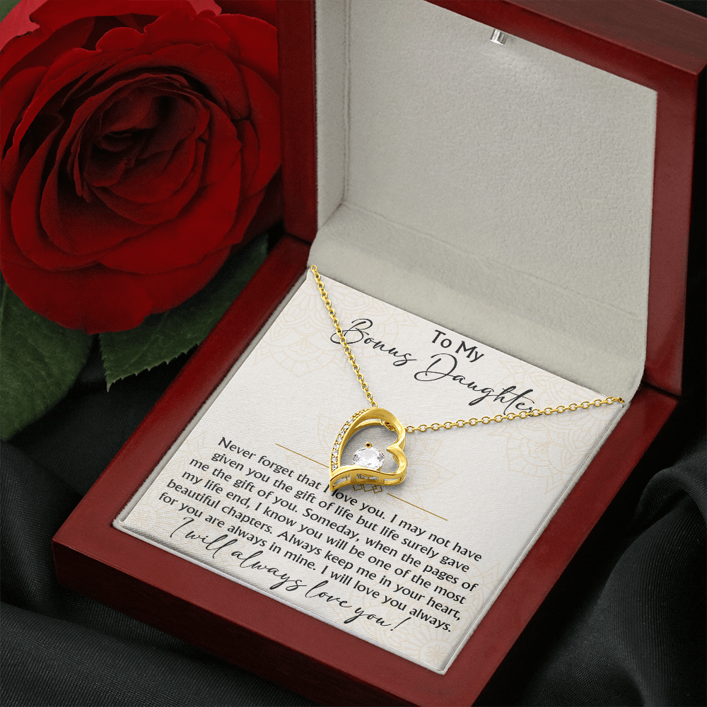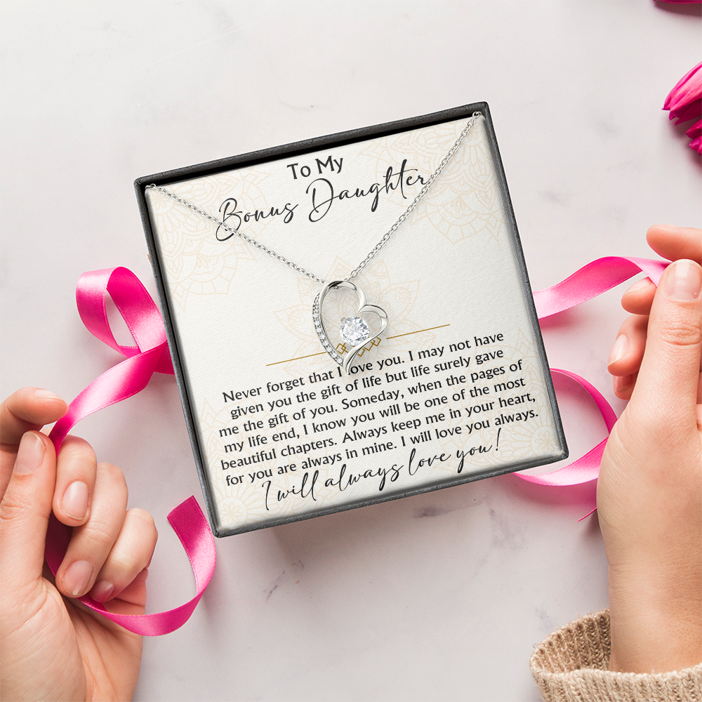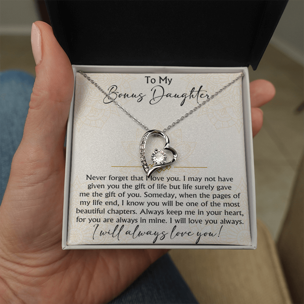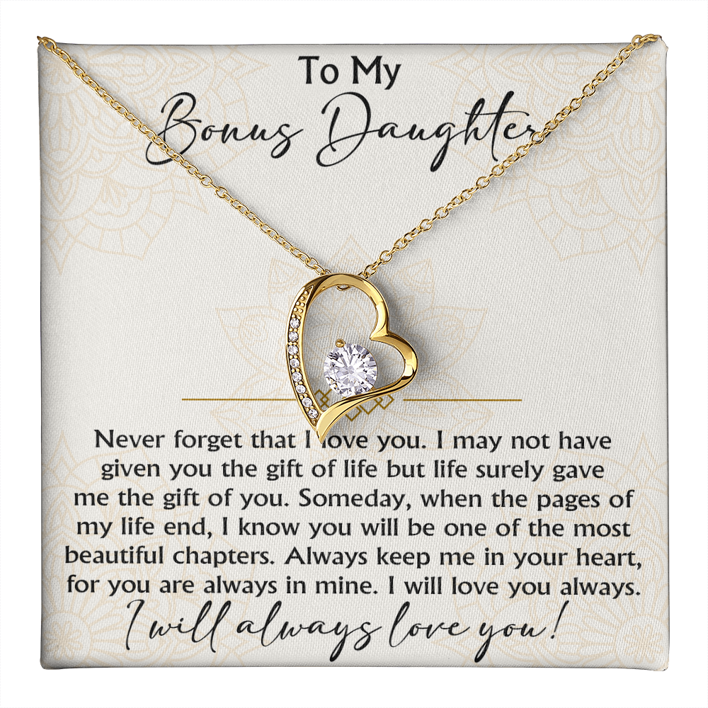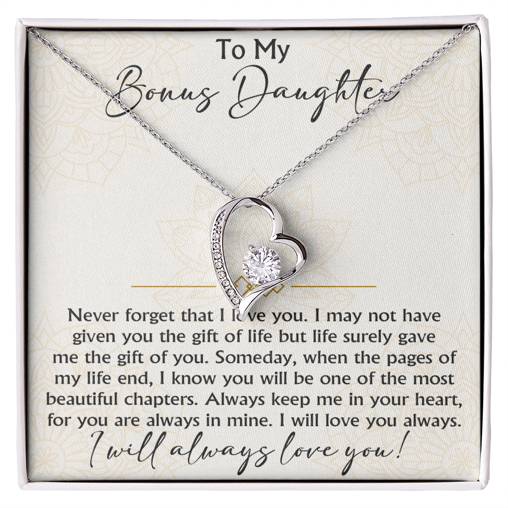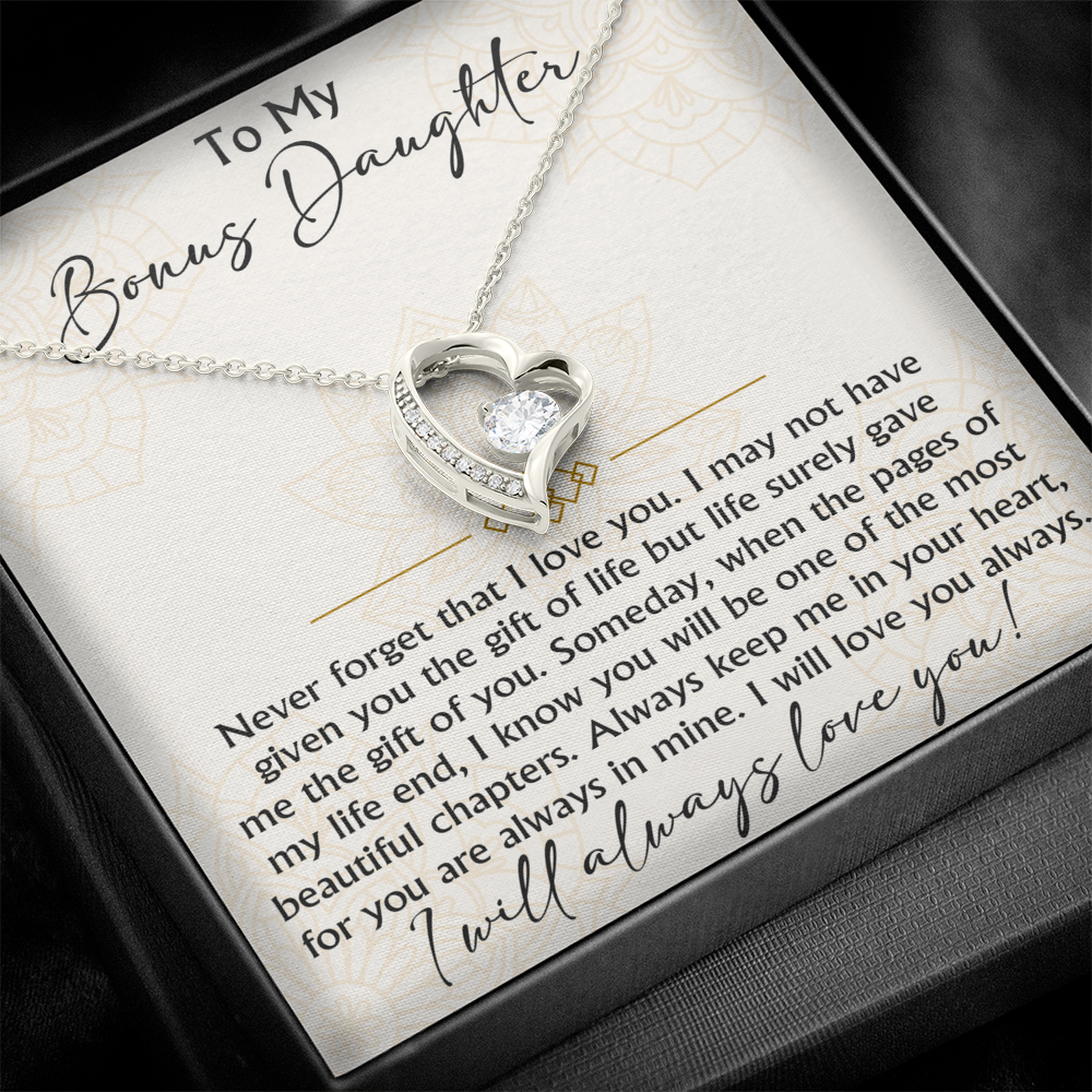 To My Bonus Daughter Forever Love Heart necklace - Birthday Xmas Gift from Bonus Mom Dad