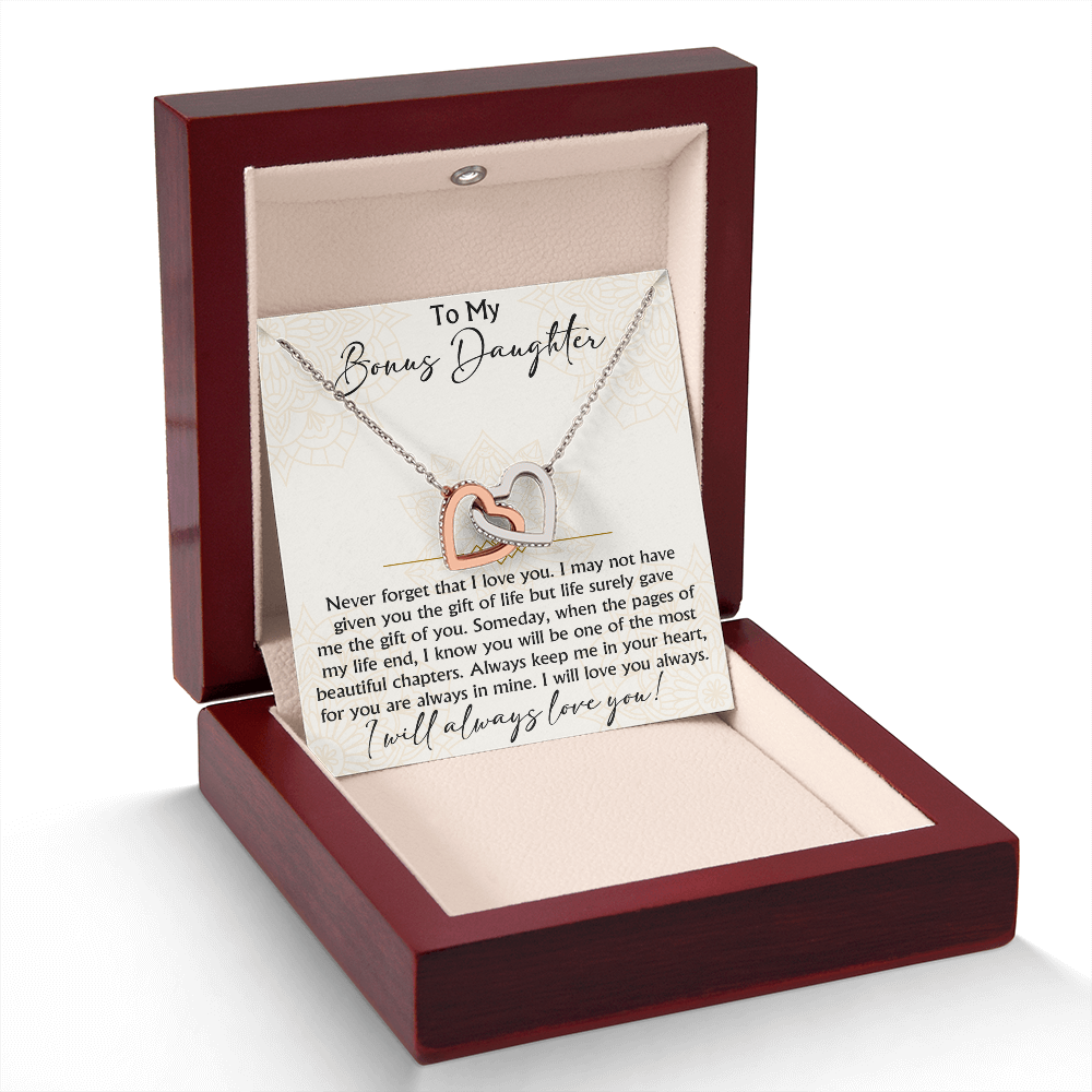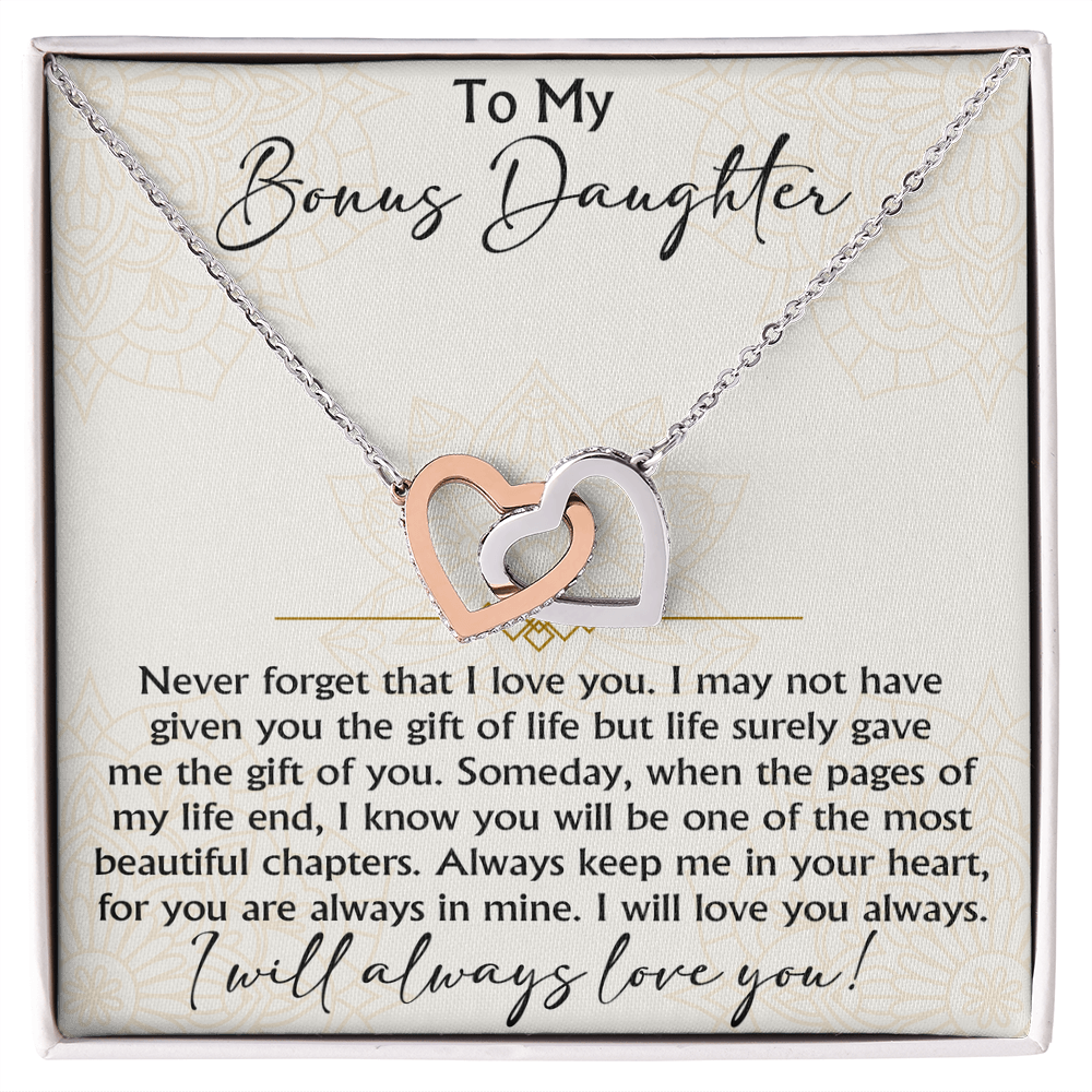 To My Bonus Daughter Interlocking Hearts necklace - Birthday Xmas Gift from Bonus Mom Dad