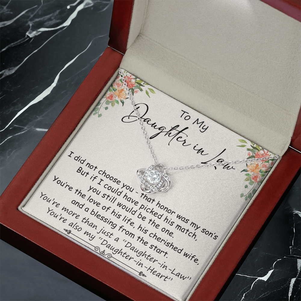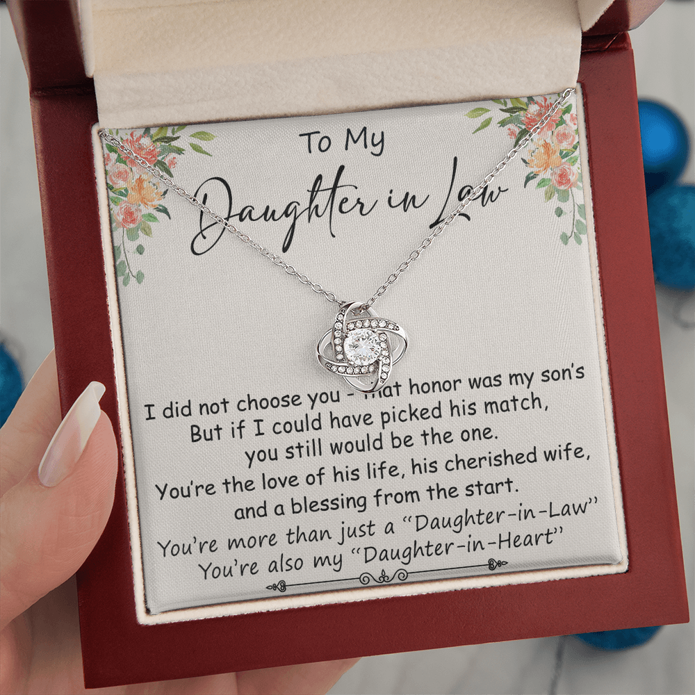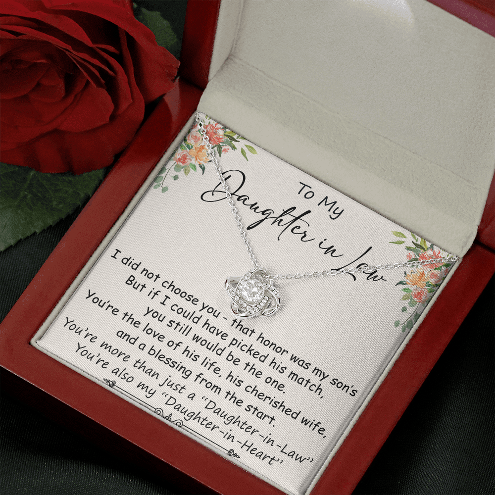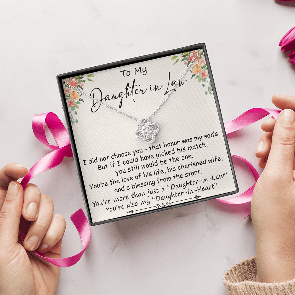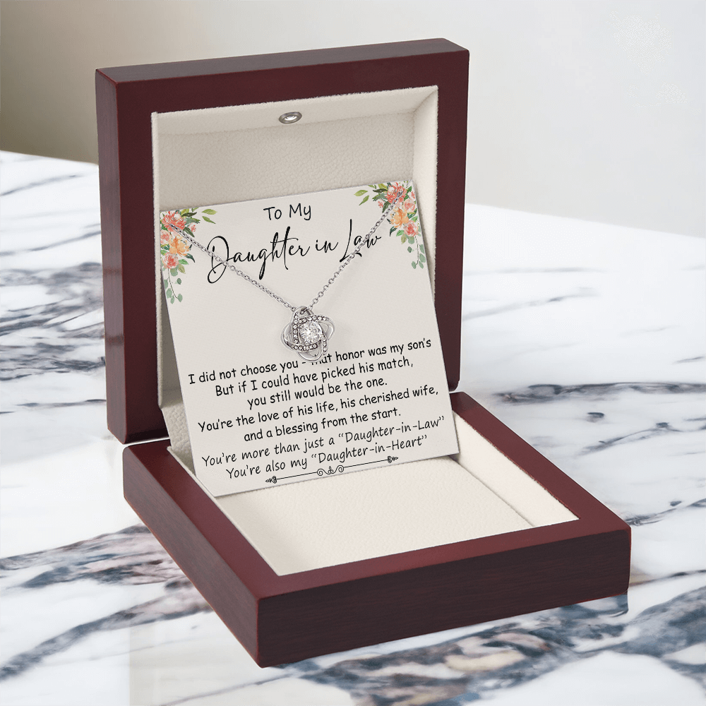 To My Daughter in Law Gift from Father Mother in law - This beautiful Love Knot Necklace Is Great Present for Bonus Daughter