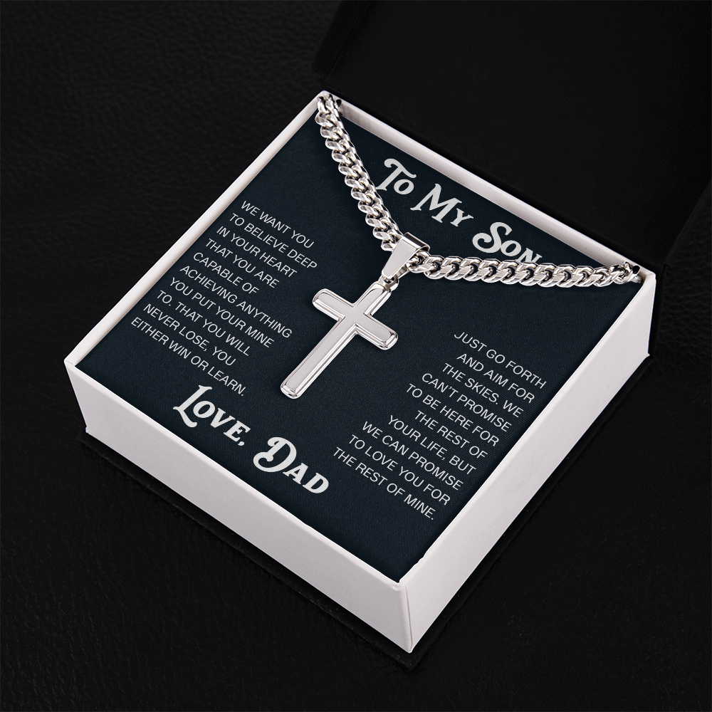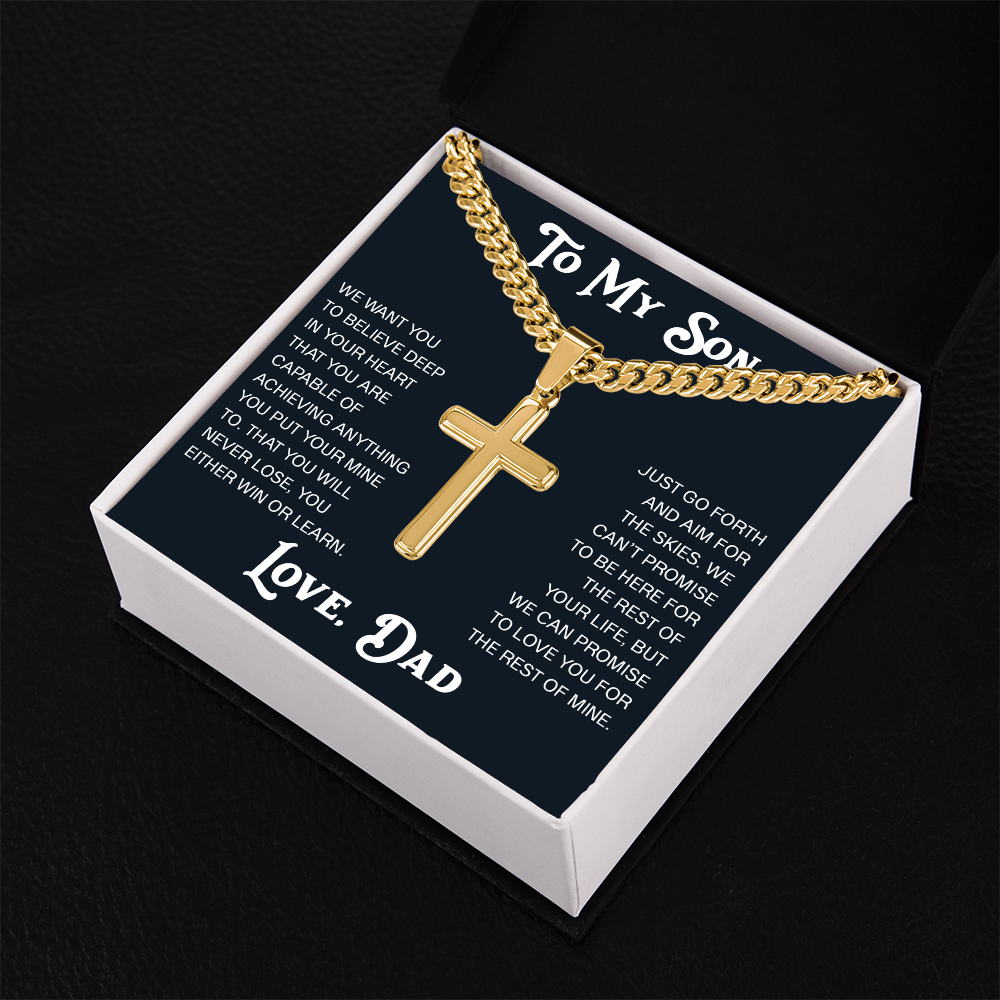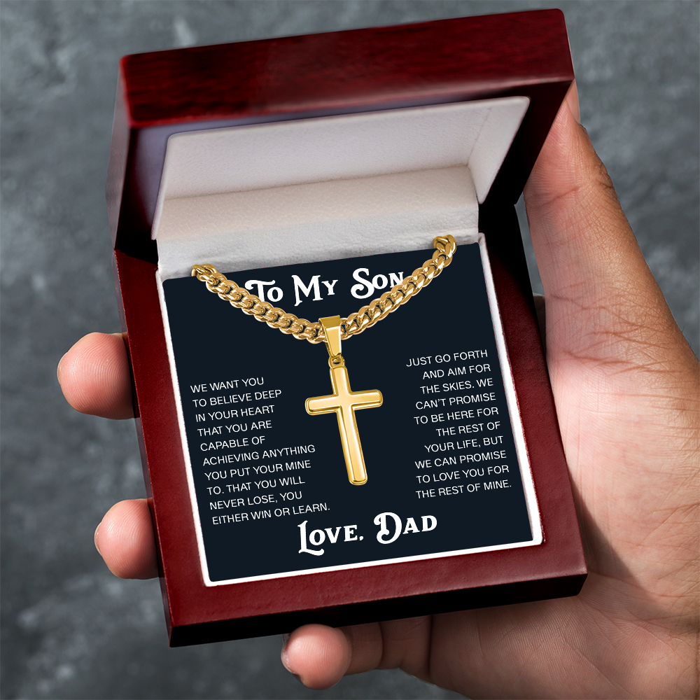 To My Son Artisan Cross with Cuban Link Chain Gift from Dad Father - Unique Present for Graduation, Birthday, Christmas or any Special Occasion