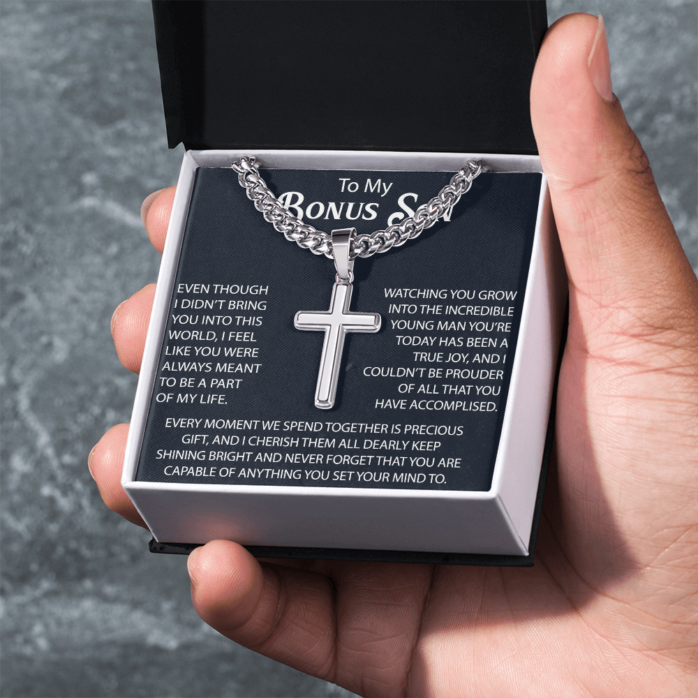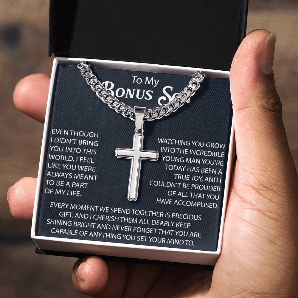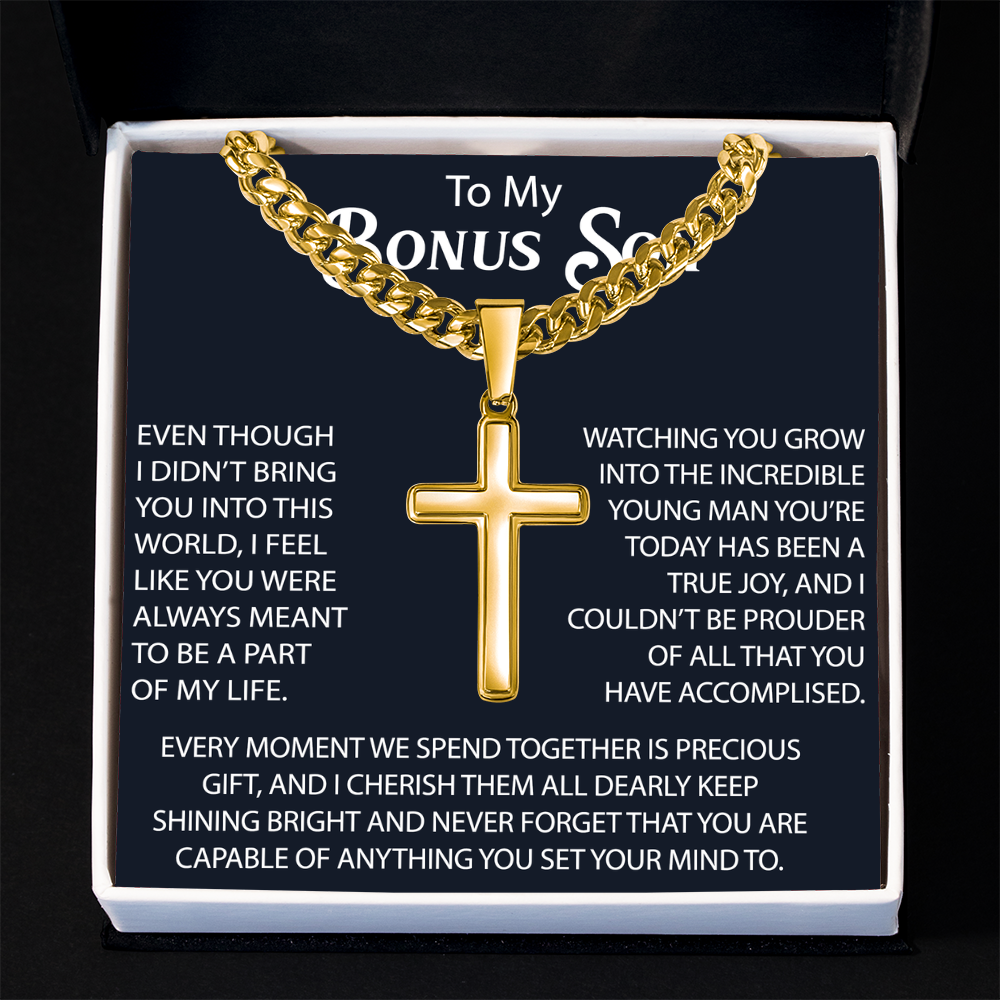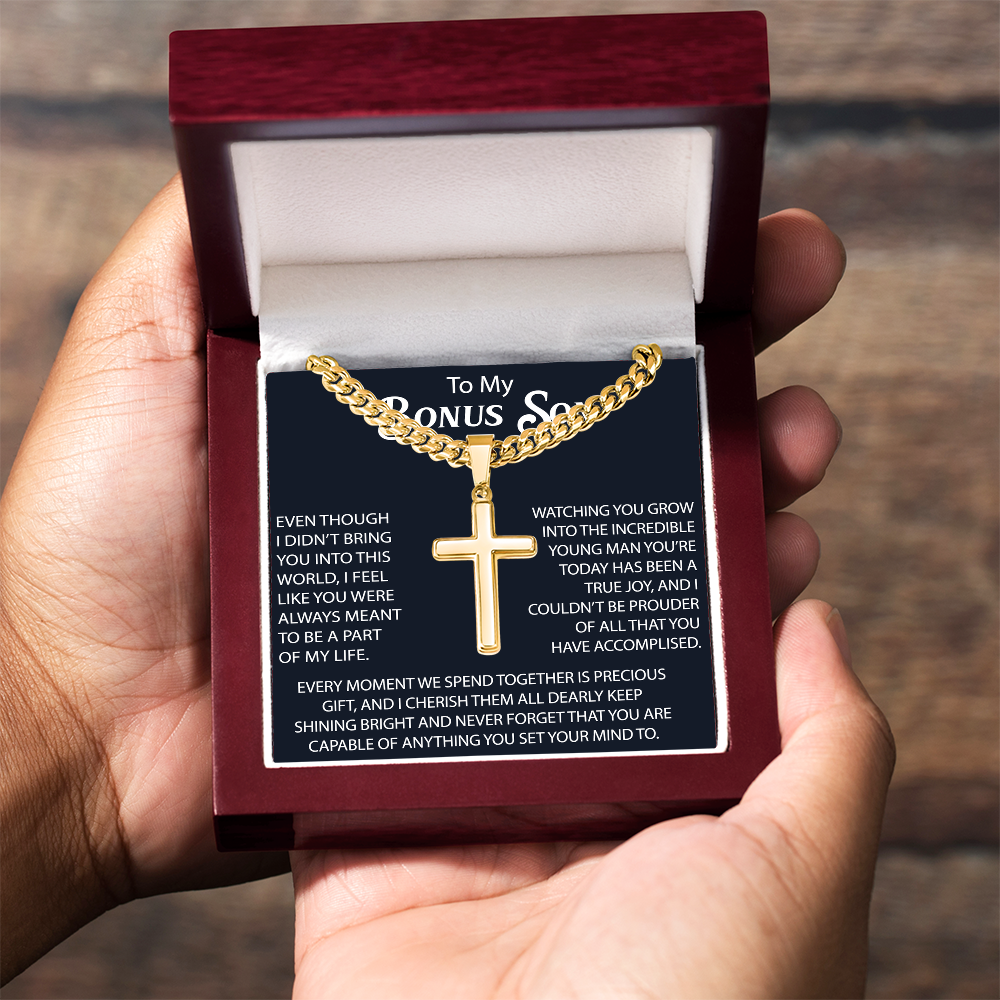 To My Son Artisan Cross with Cuban Link Chain Gift from Dad Father - Unique Present for Graduation, Birthday, Christmas or any Special Occasion.
