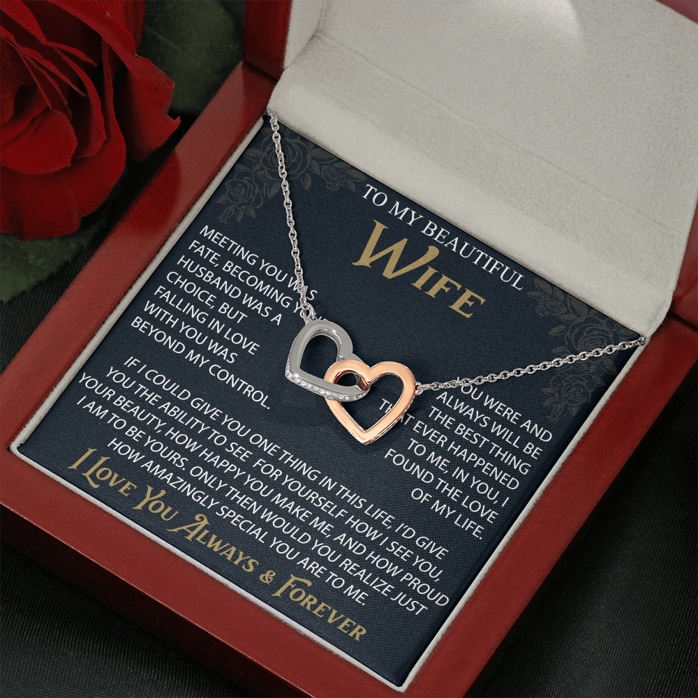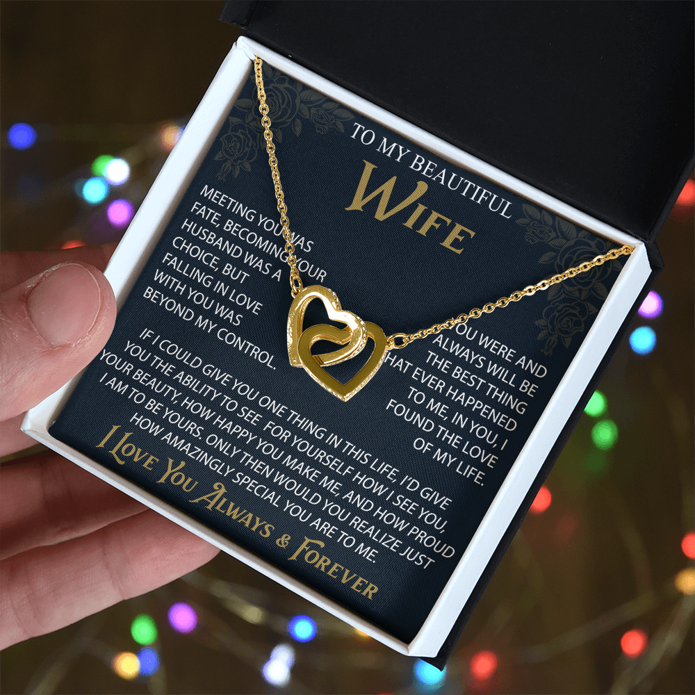 To My Wife Interlocking Hearts Necklace, Christmas Gifts For Women, Anniversary Gift For Wife