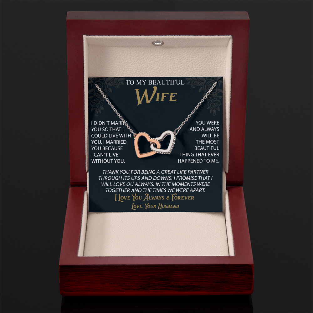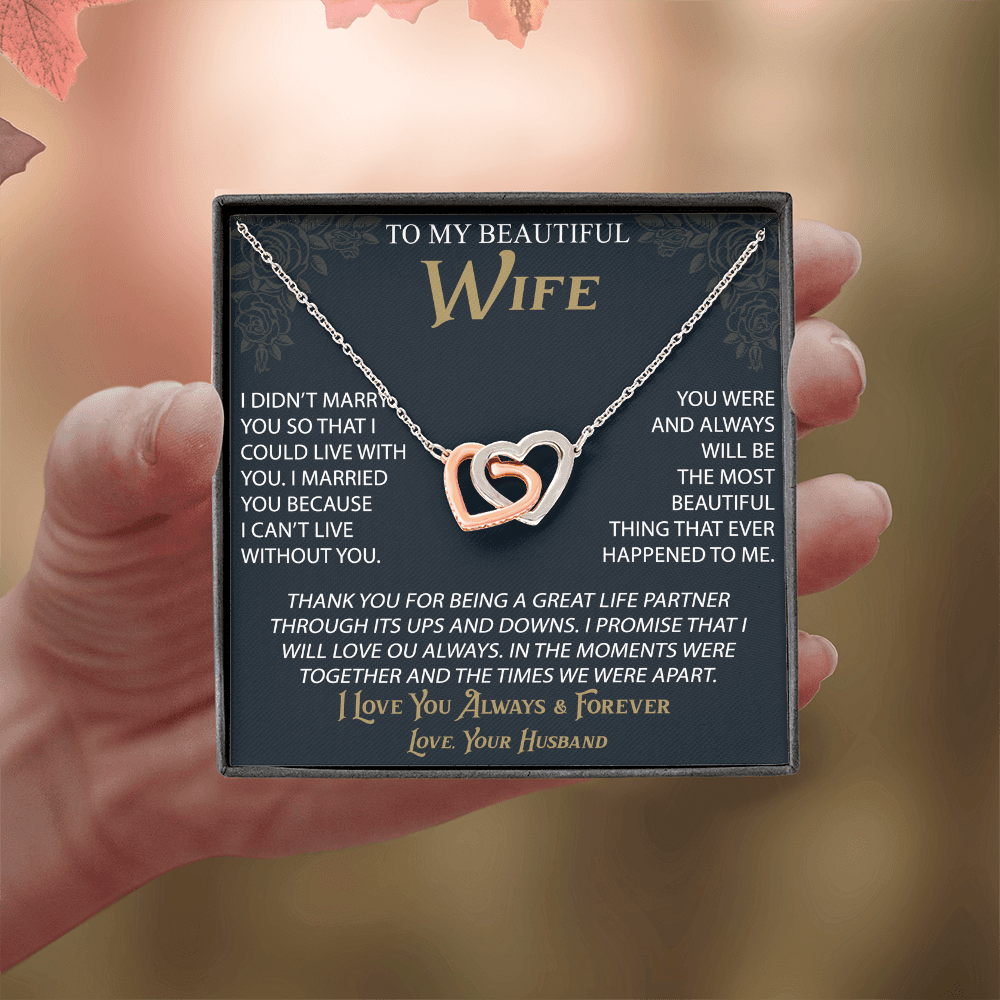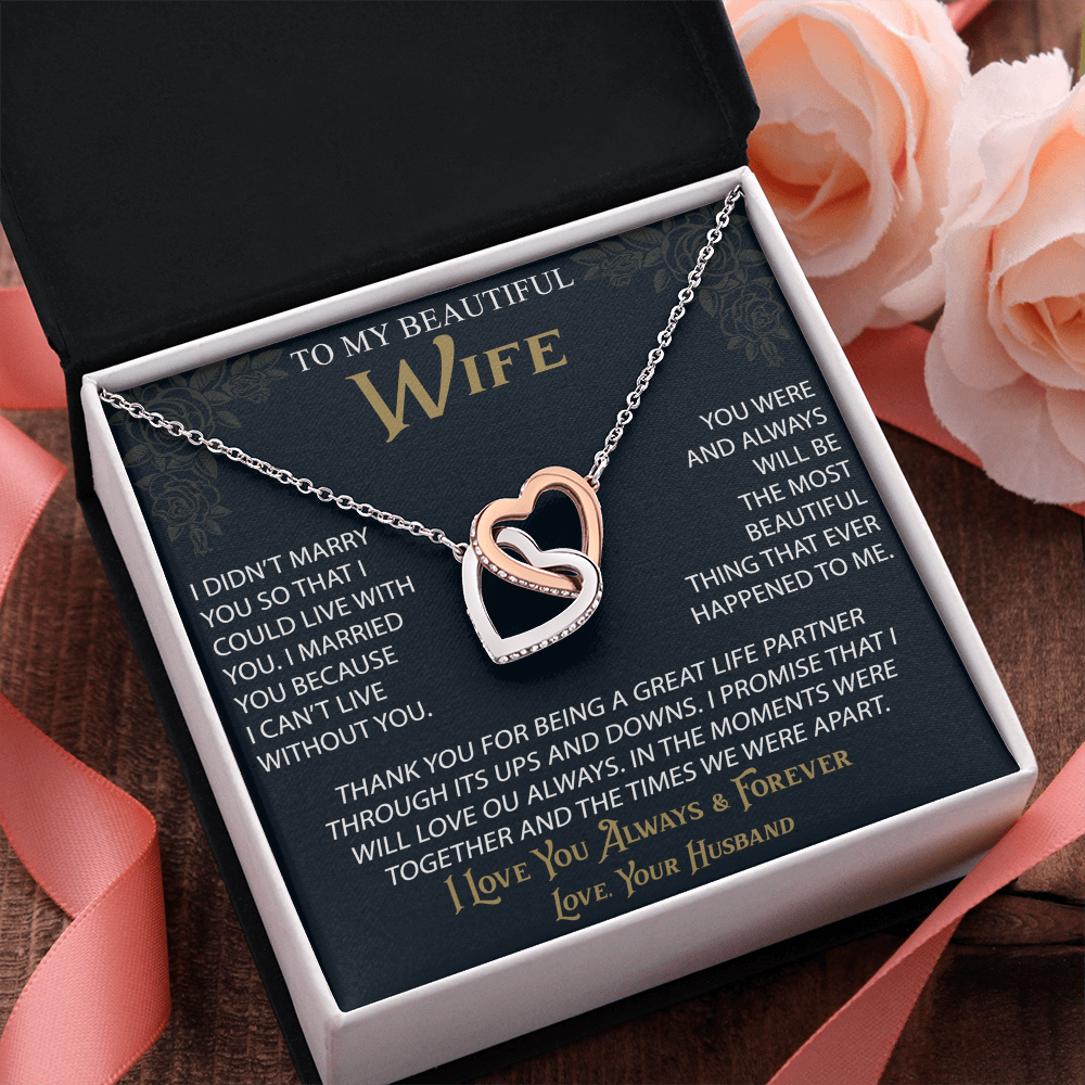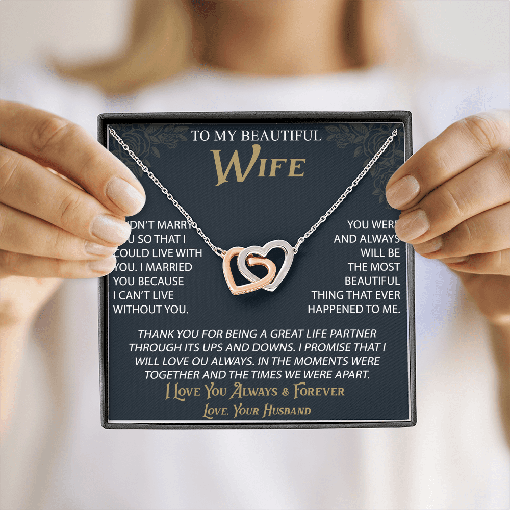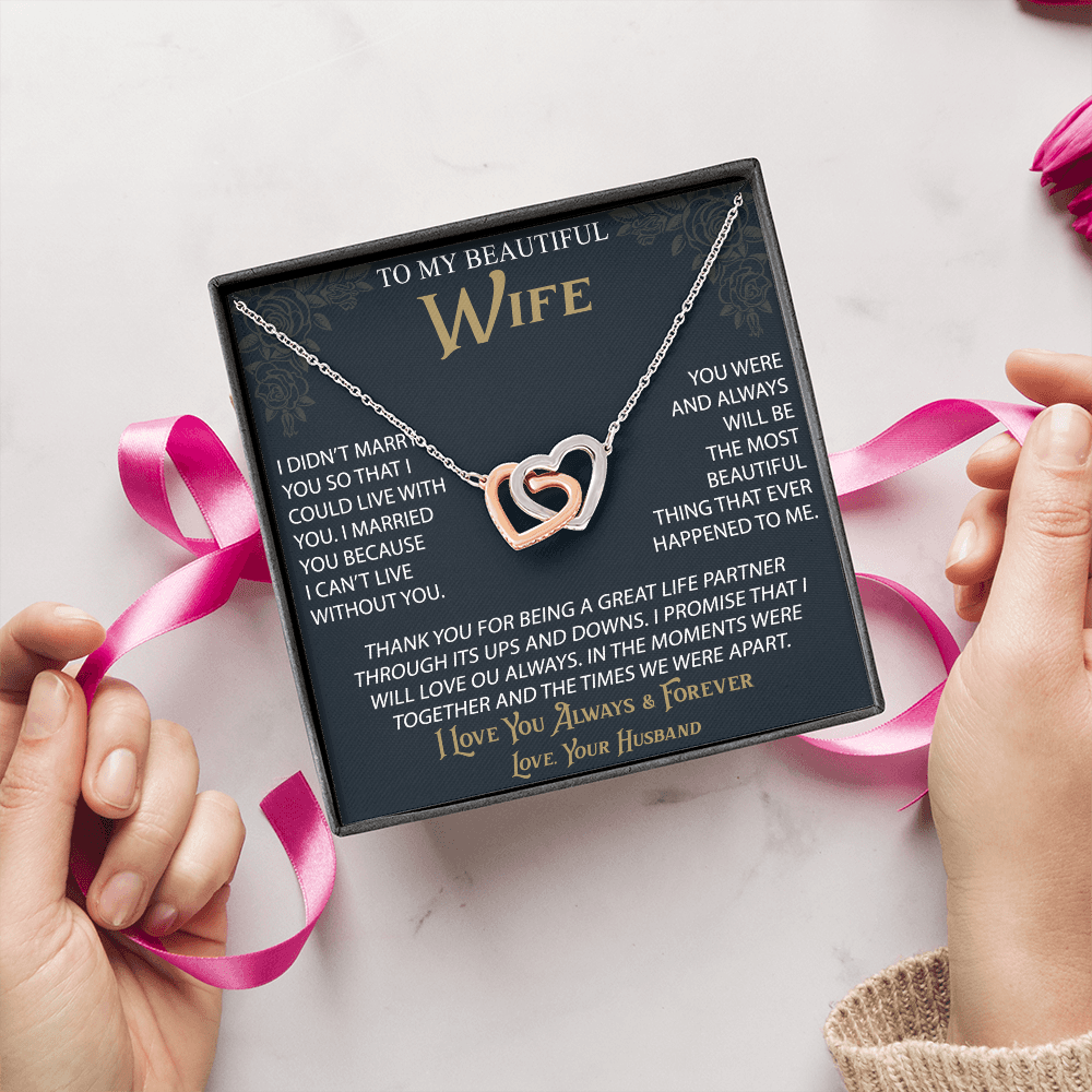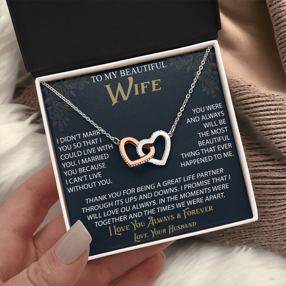 To My Wife Interlocking Hearts Necklace from Husband, Christmas Gifts For Women, Anniversary Gift For Wife, Soulmate