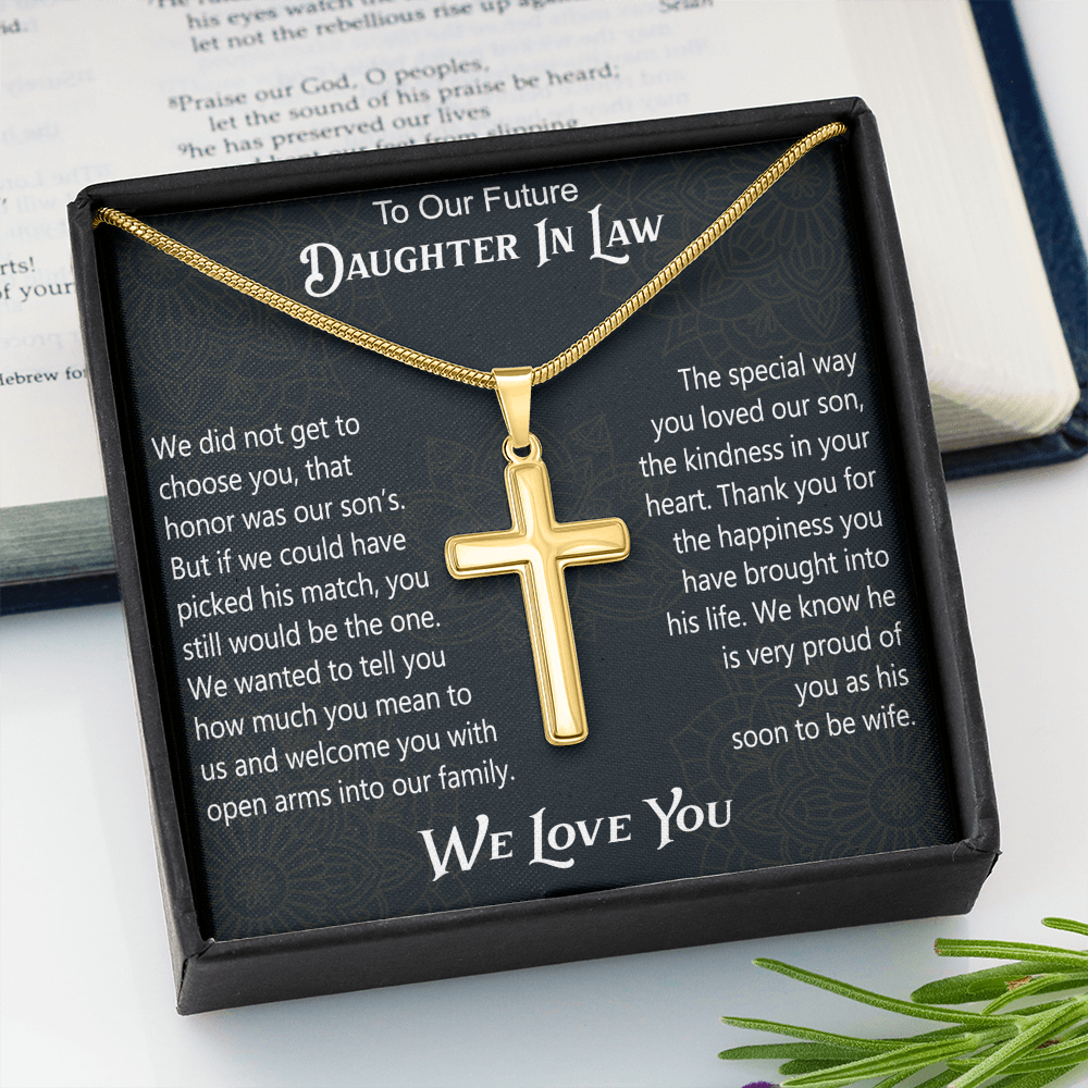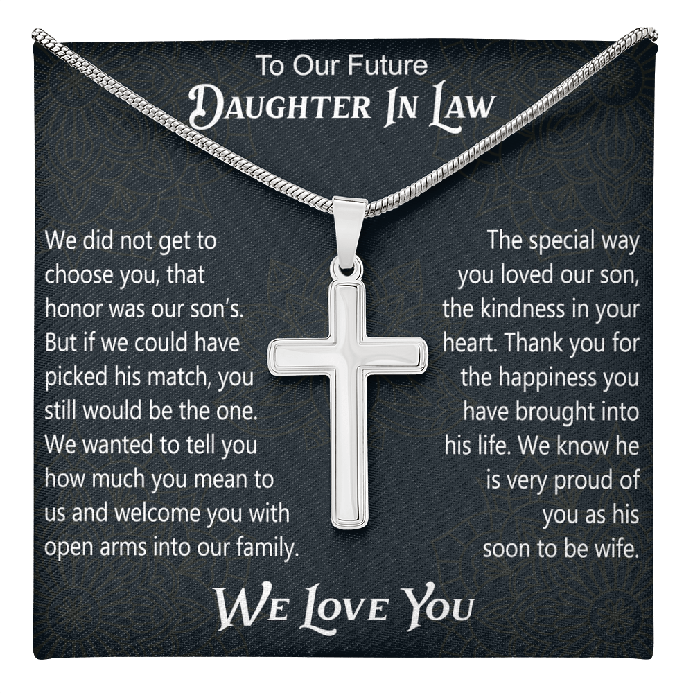 To Our Future Daughter In Law Artisan Cross Necklace Gift for Birthday Wedding Christmas or any Special Occasion.