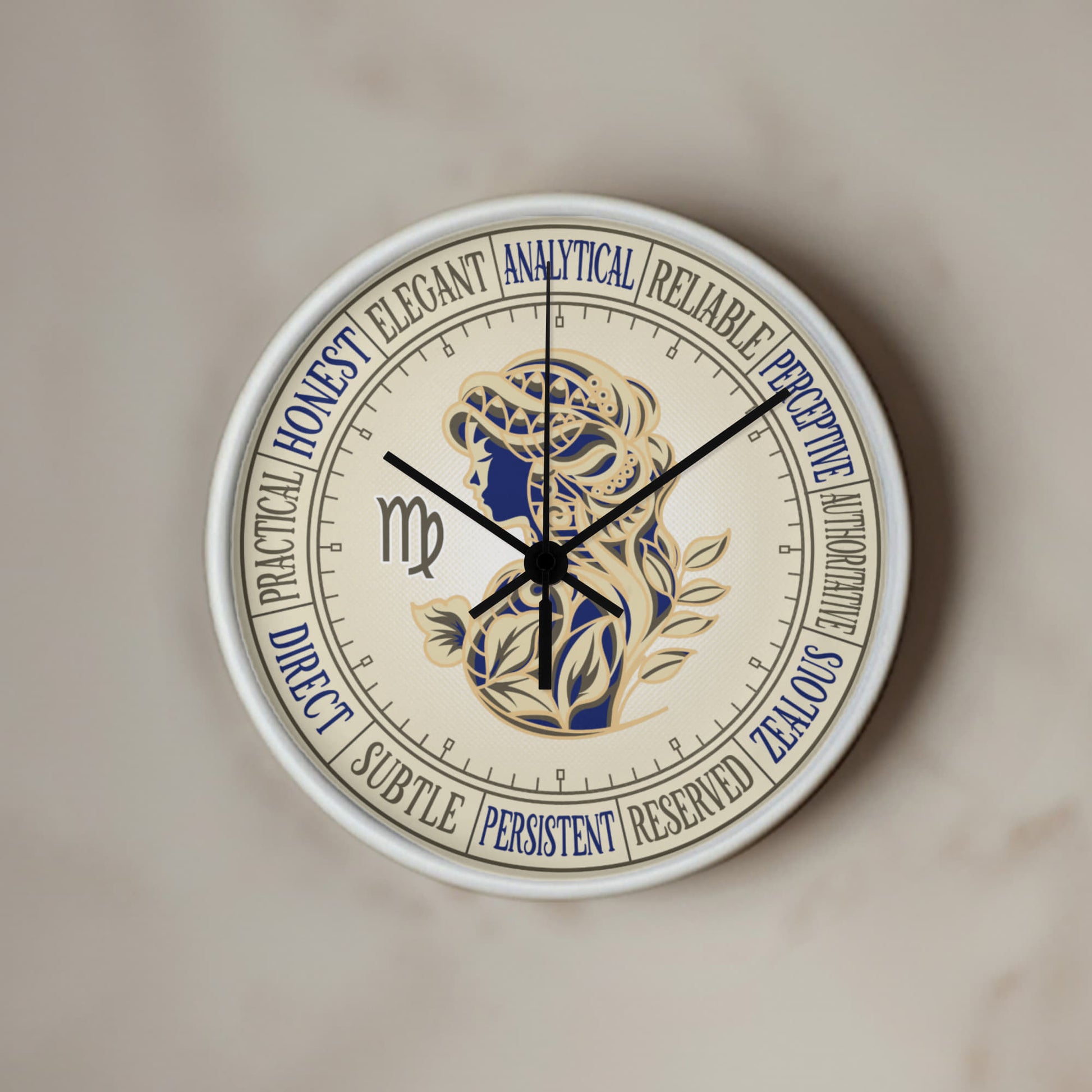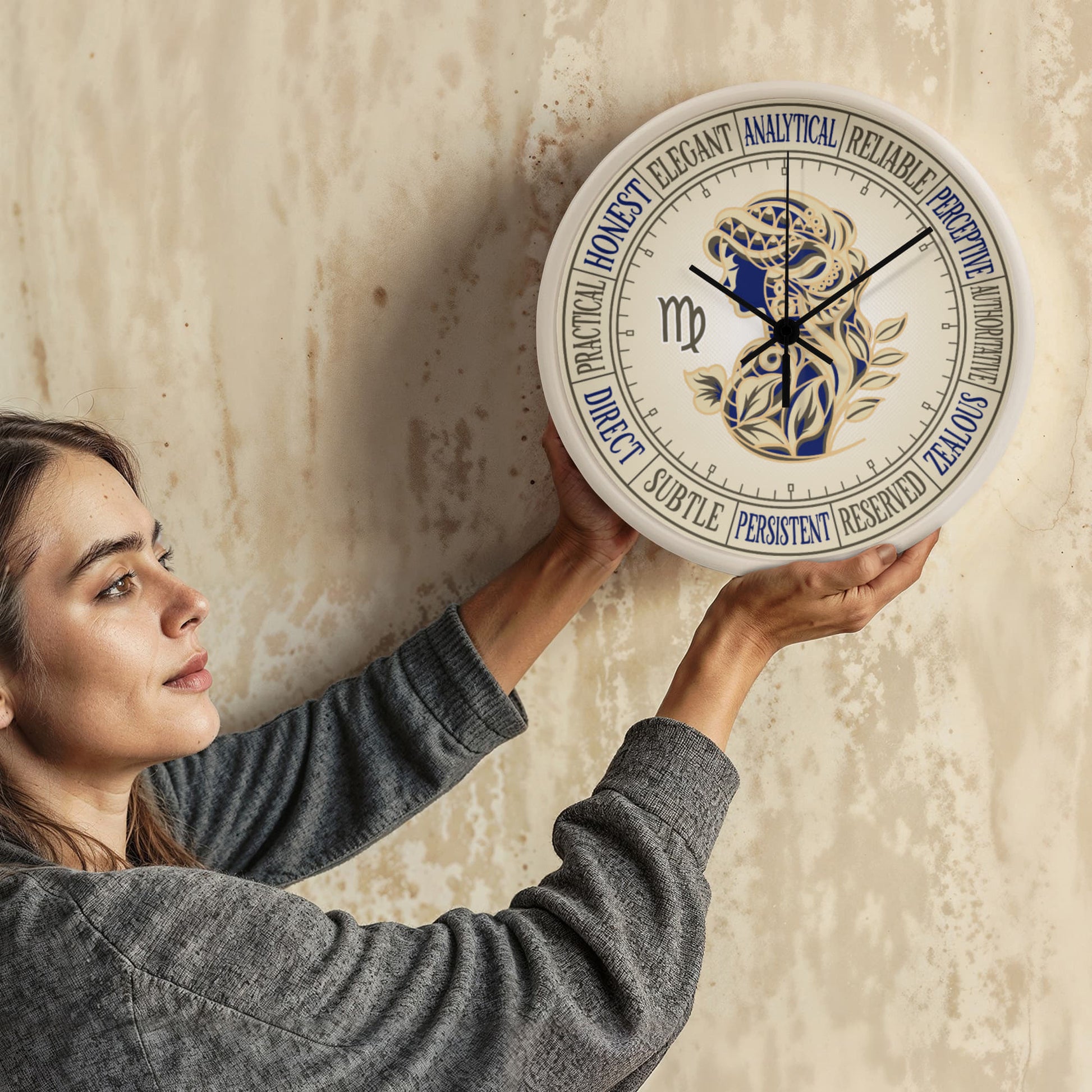 Virgo Wall Clock – Printed Zodiac Silhouette Art, Gift for Astrology Lovers, Celestial Home Decor, 10” Clock