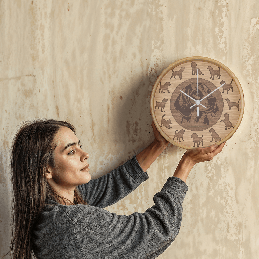 Wood Frame Beagle Wall Clock - Minimalist Silhouette, 10 Inch Quartz, Eco-Friendly Dog Gift, Nordic Pet Decor, Mother's Day Gift