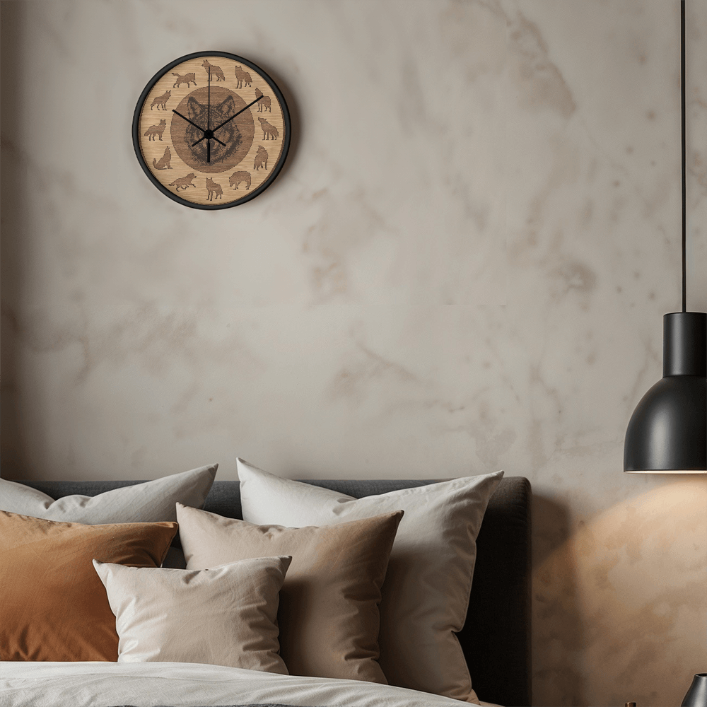 Wooden Frame Wolf Wall Clock - Rustic Silhouette, 10 Inch Quartz, Eco-Friendly Wildlife Gift, Farmhouse Decor, Mother's Day Gift