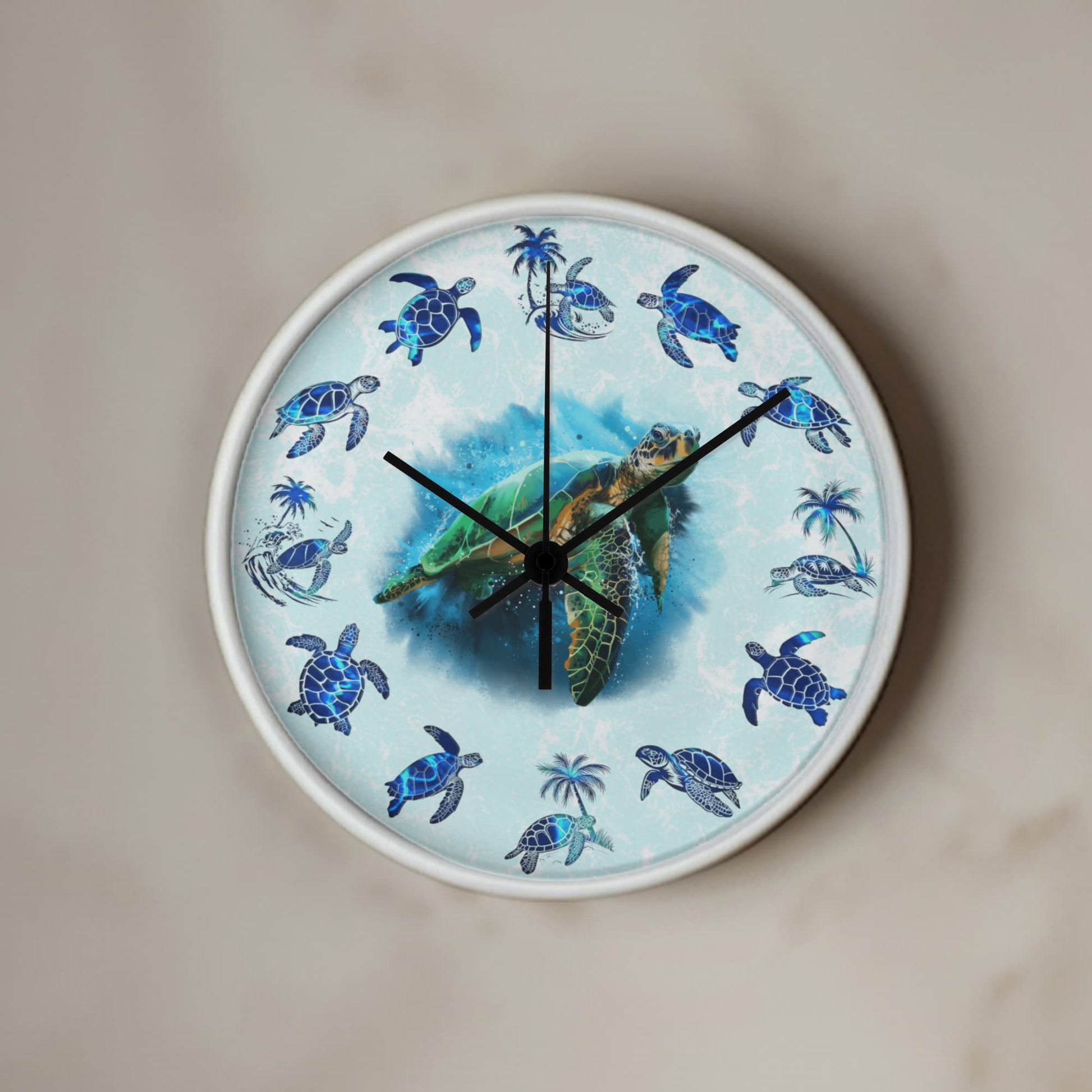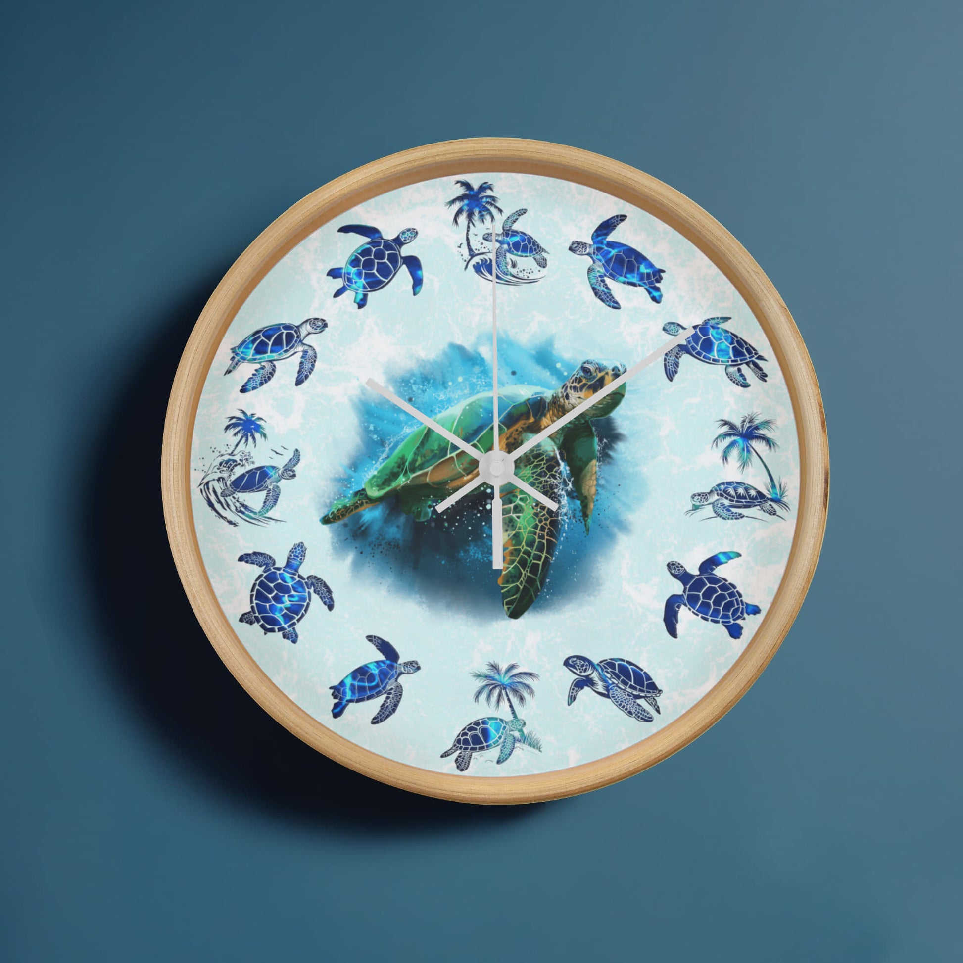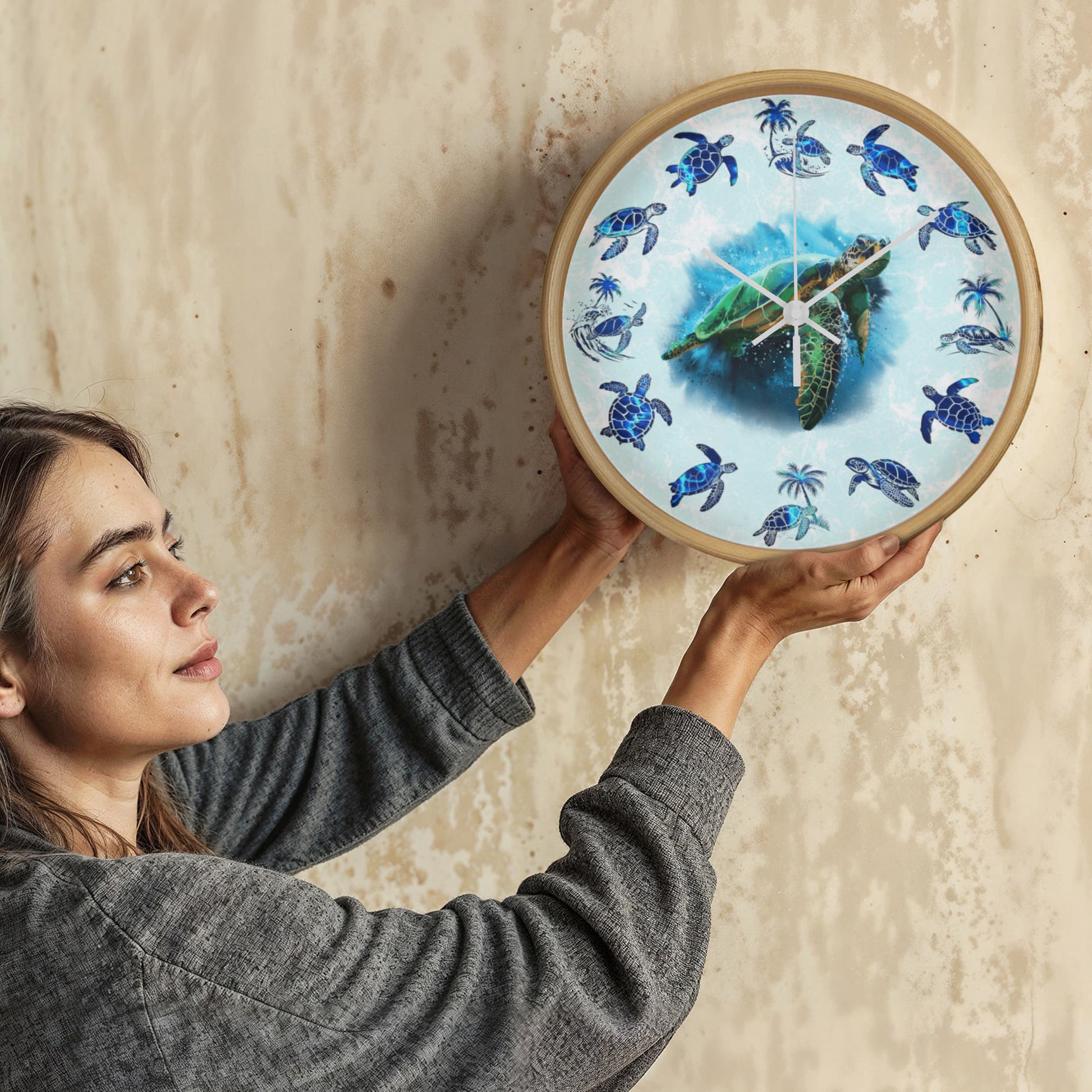 Wooden Sea Turtle Wall Clock - Rustic Wall Art, 10in Quartz, Turtle Lover Gift, Coastal Decor, Ocean Accent