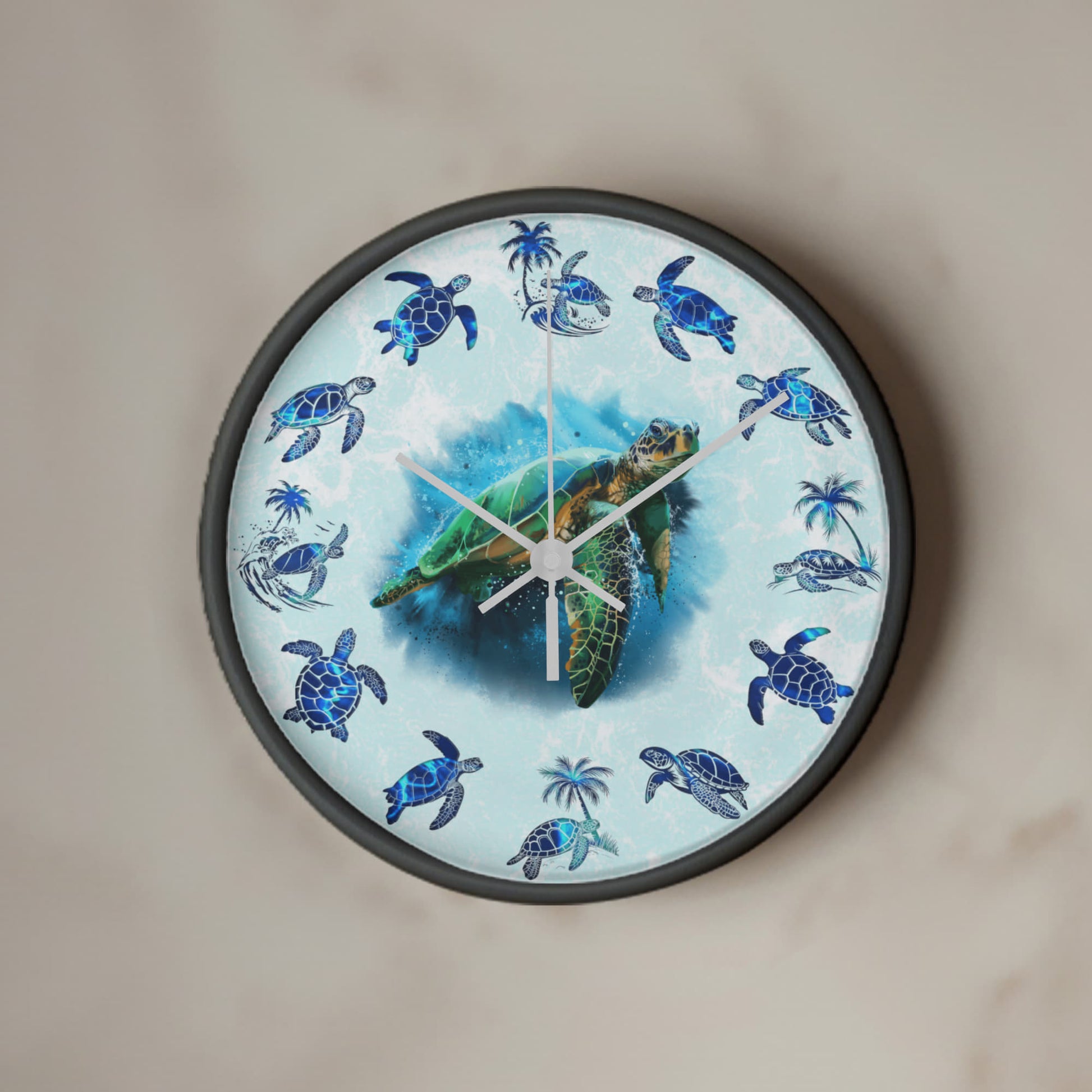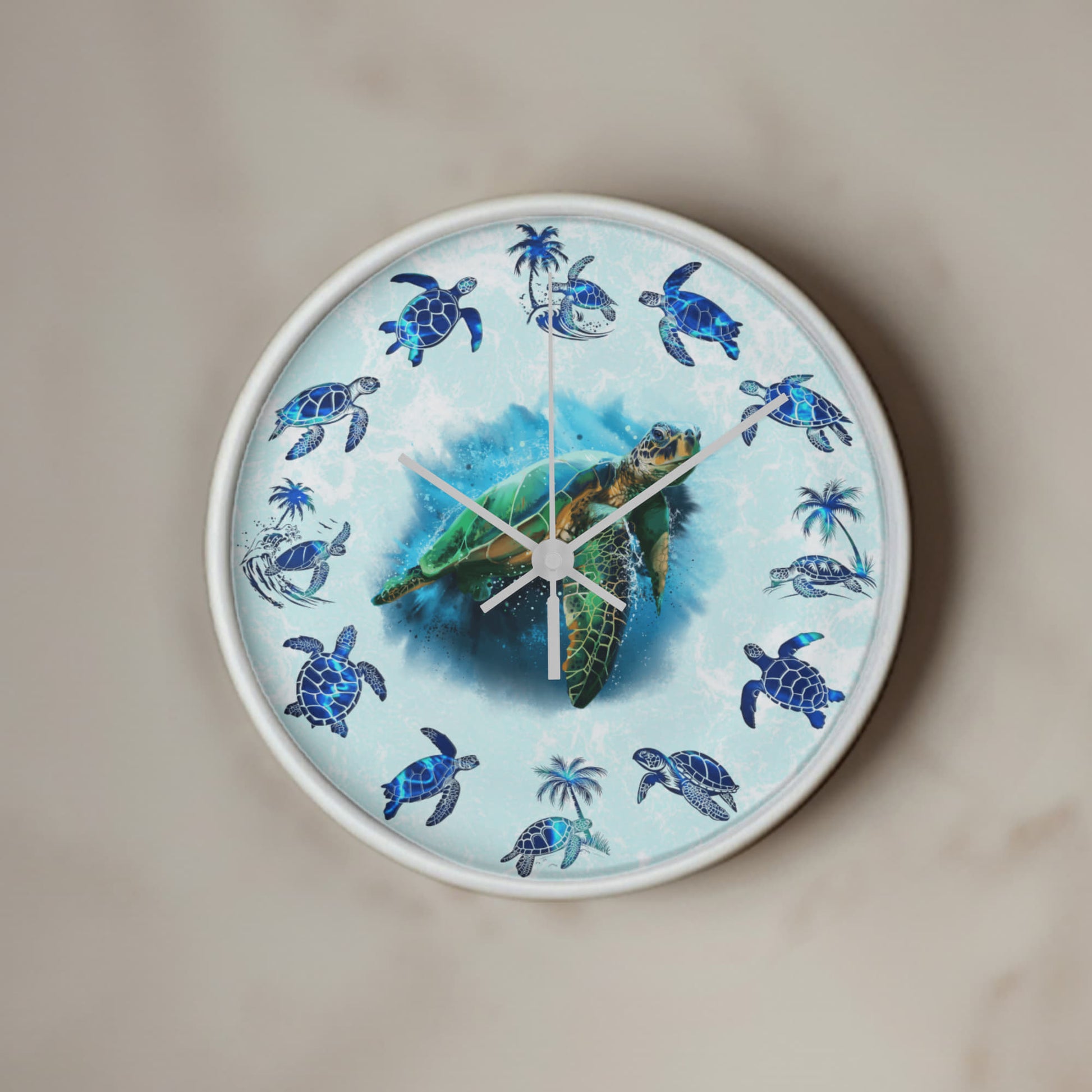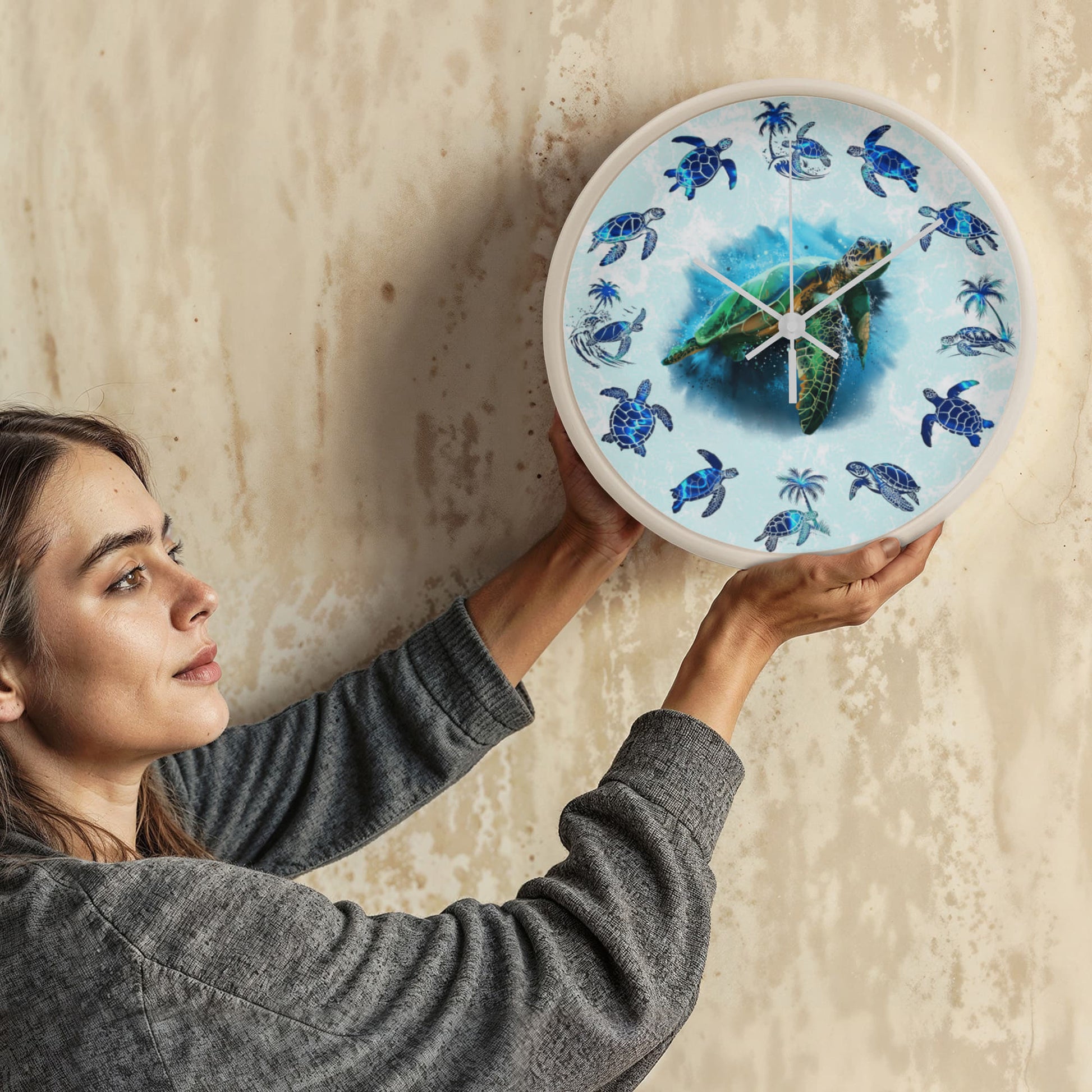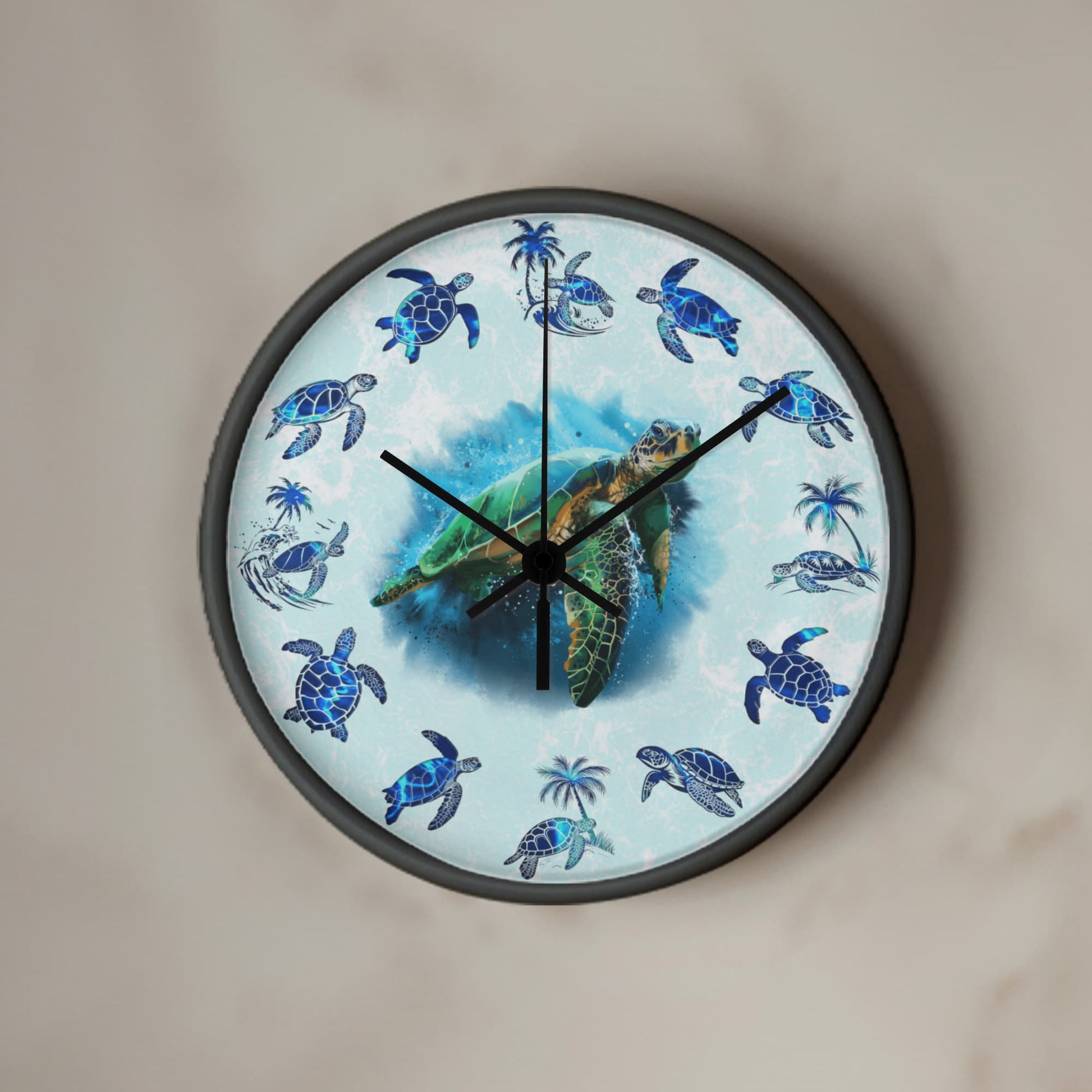 Wooden Sea Turtle Wall Clock - Rustic Wall Art, 10in Quartz, Turtle Lover Gift, Coastal Decor, Ocean Accent